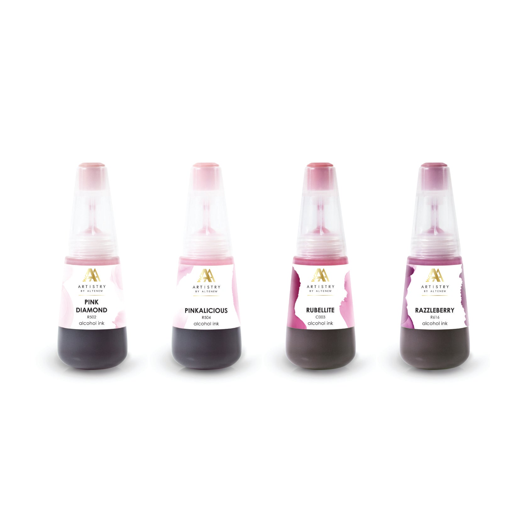 This bundle contains all four Alcohol Inks from Cherry Blossom color series: Pink Diamond Alcohol Ink, Pinkalicious Alcohol Ink, Rubellite Alcohol Ink, and Razzleberry Alcohol Ink, at a specially discounted price.