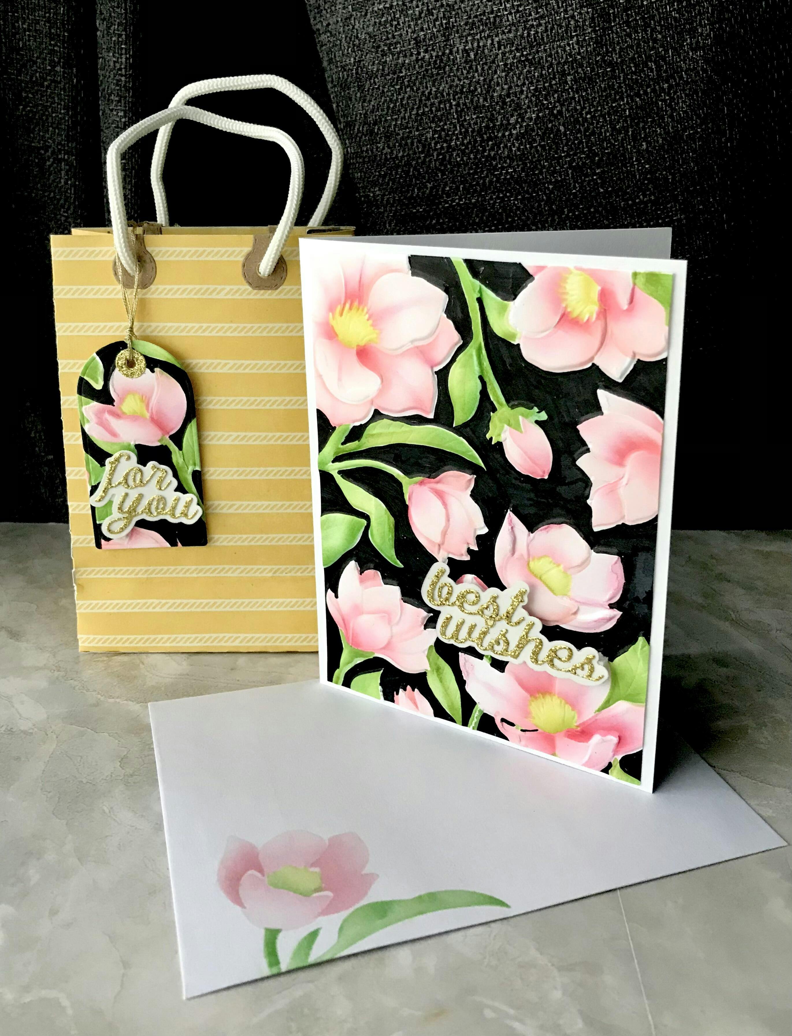 This is truly a beautiful embossing folder and stencil. It is so easy to use to create an elegant and versatile backdrop. I shared with friends and they think it is a must have, too.