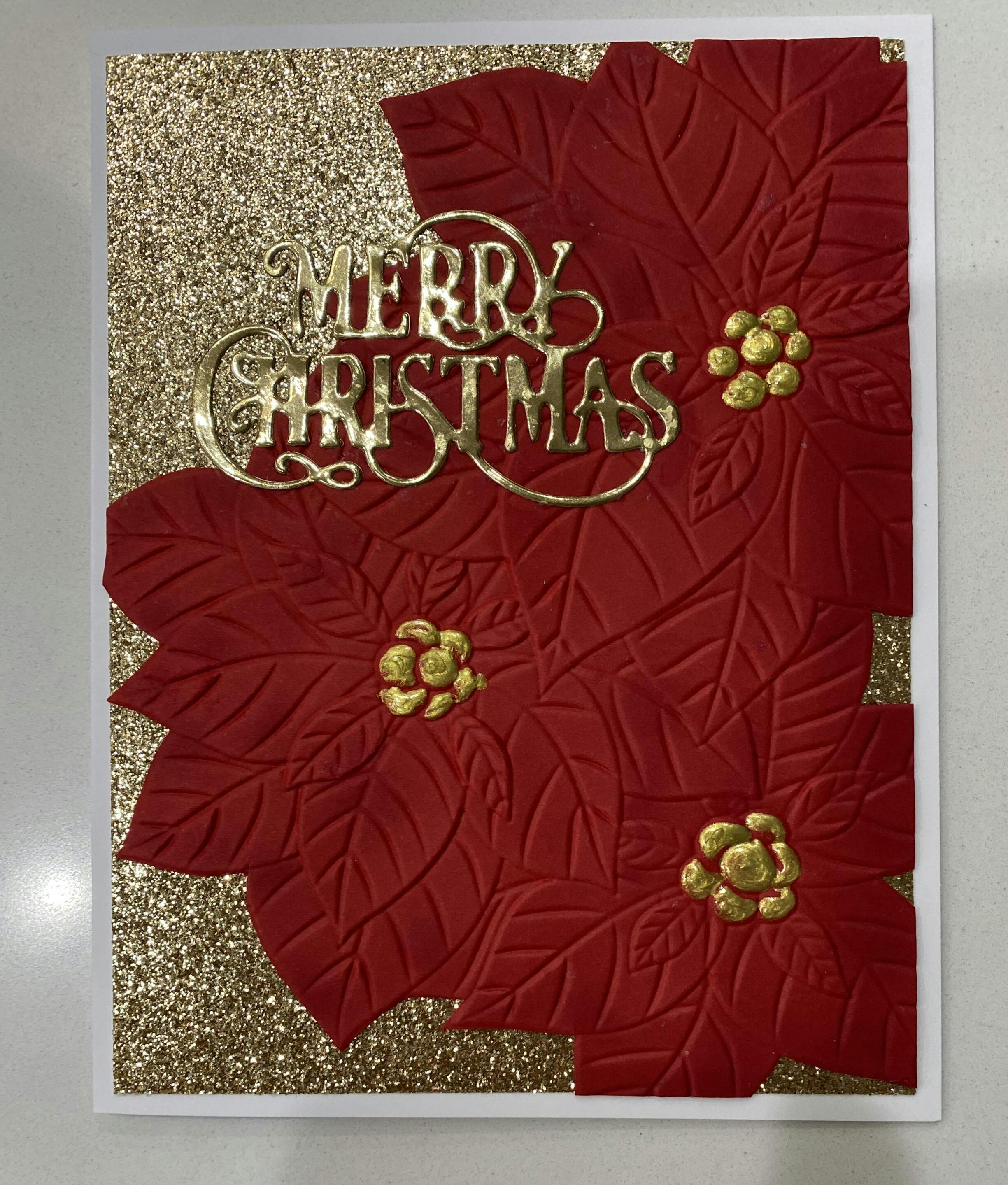 I cut it out using red card stock and put a gold glitter card stock behind it. Very fast and easy to make a beautiful card!