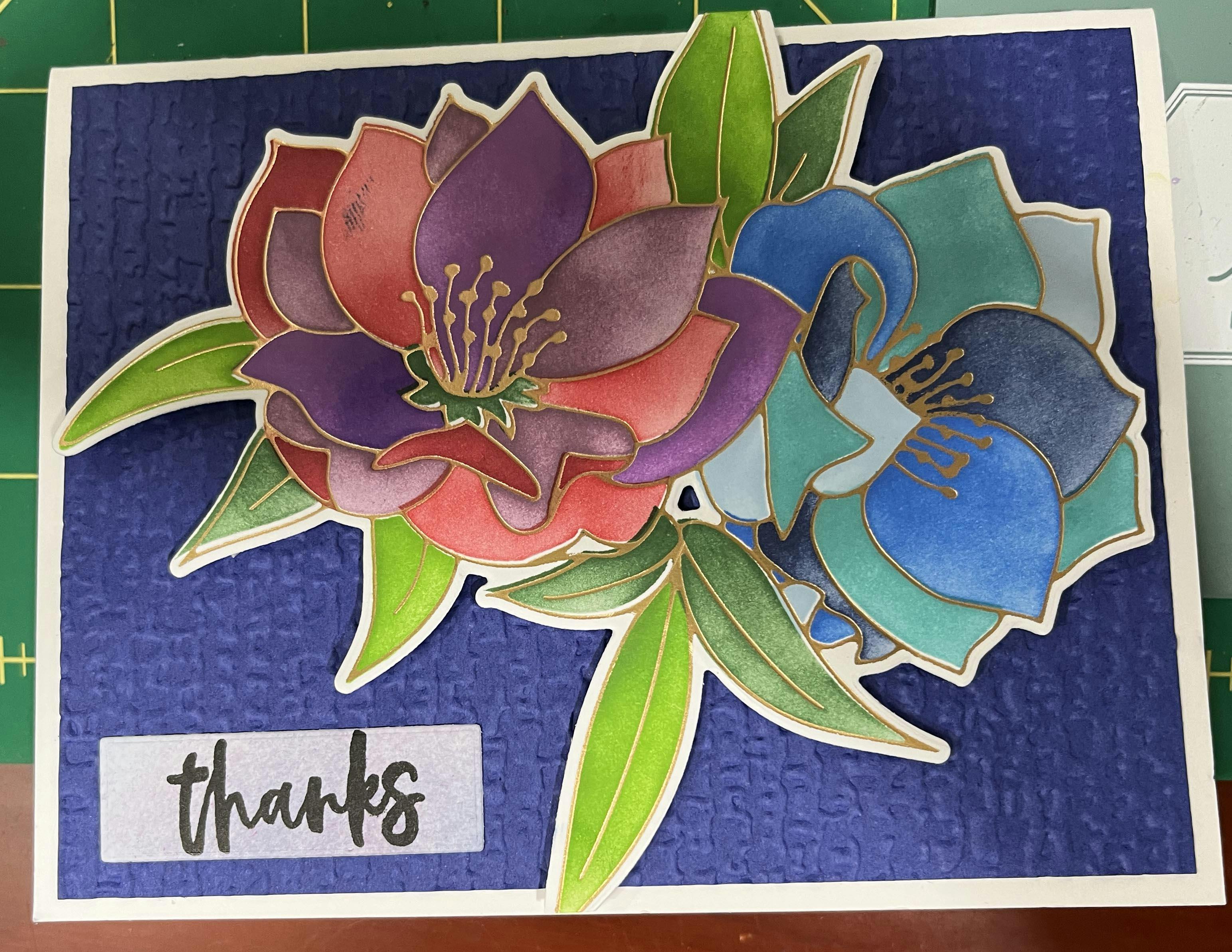 Embrace the beauty of two intricately designed black hellebore blooms, with velvety dark petals and long, elegant leaves. Use Spark Joy: Black Hellebore Simple Coloring Stencil Set to color in the delicate petals and leaves in the coordinating hot foil plate!
