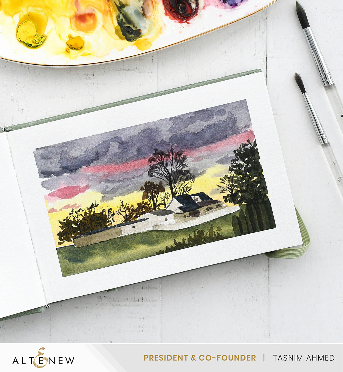 Wrapped in a gorgeous sage green textured faux leather hard cover, this landscape-format watercolor sketchbook is both refined and built to last. Inside, thick cold-pressed pages provide the perfect surface for expressive brushwork, scenic studies, and everyday creativity.