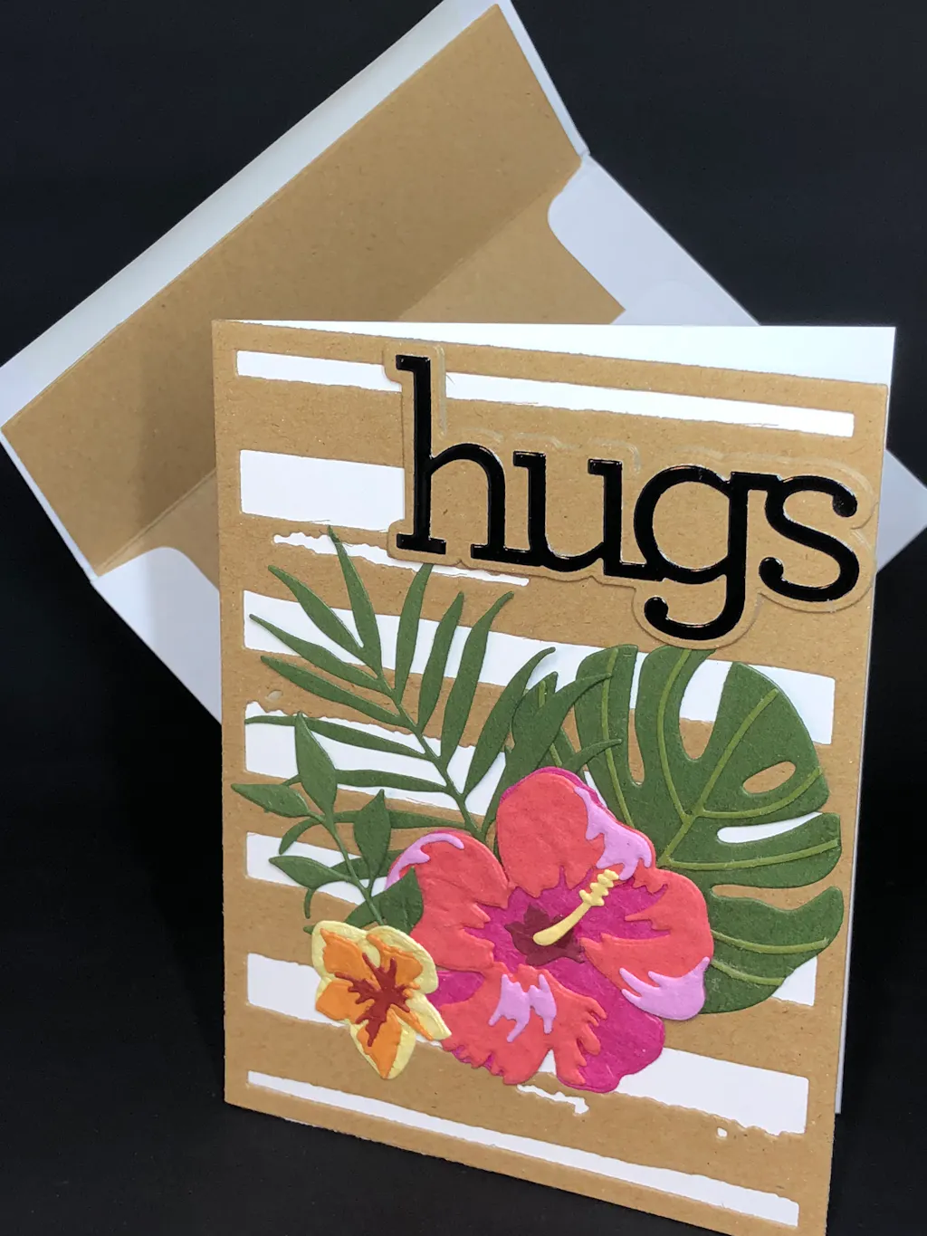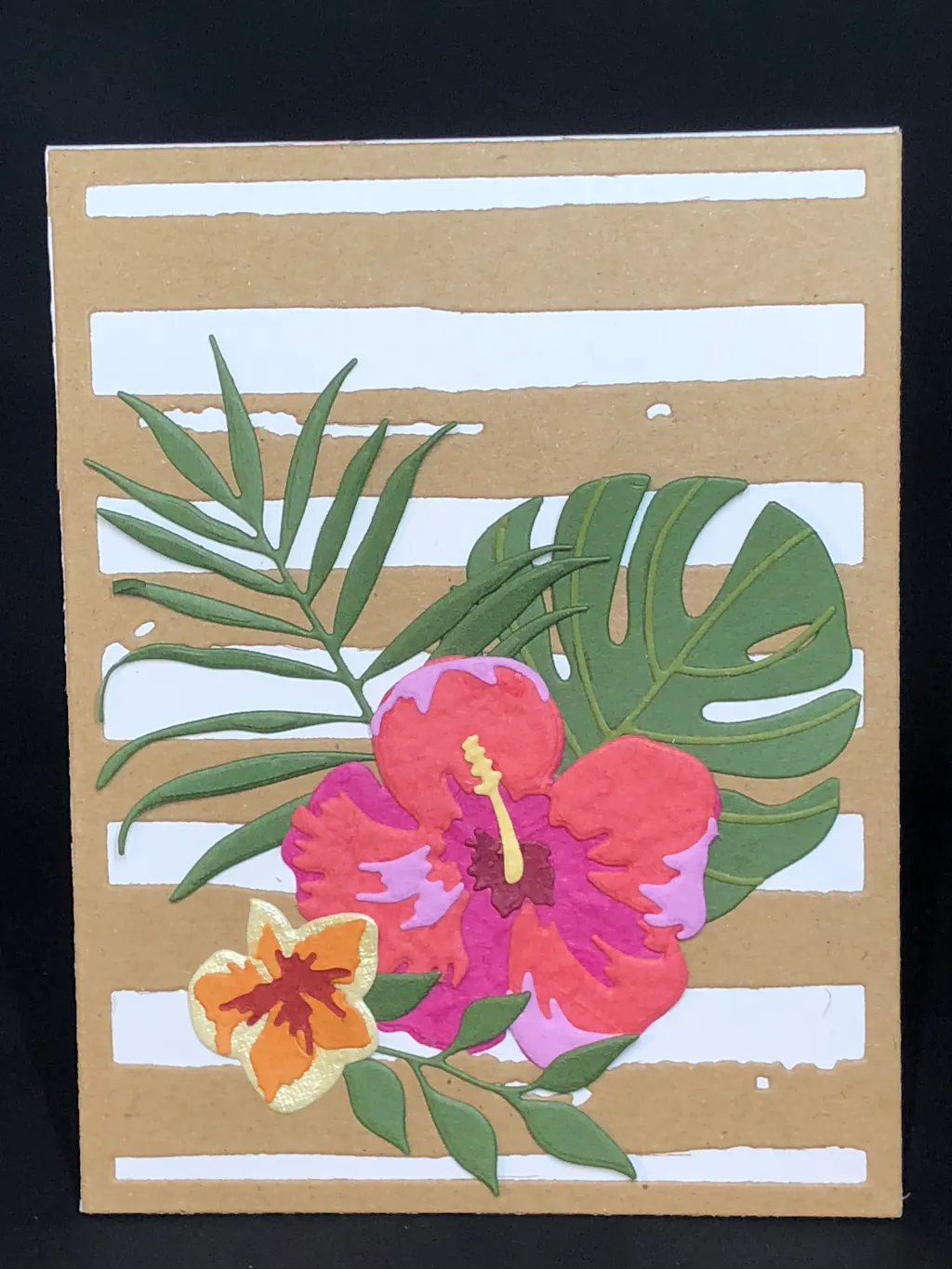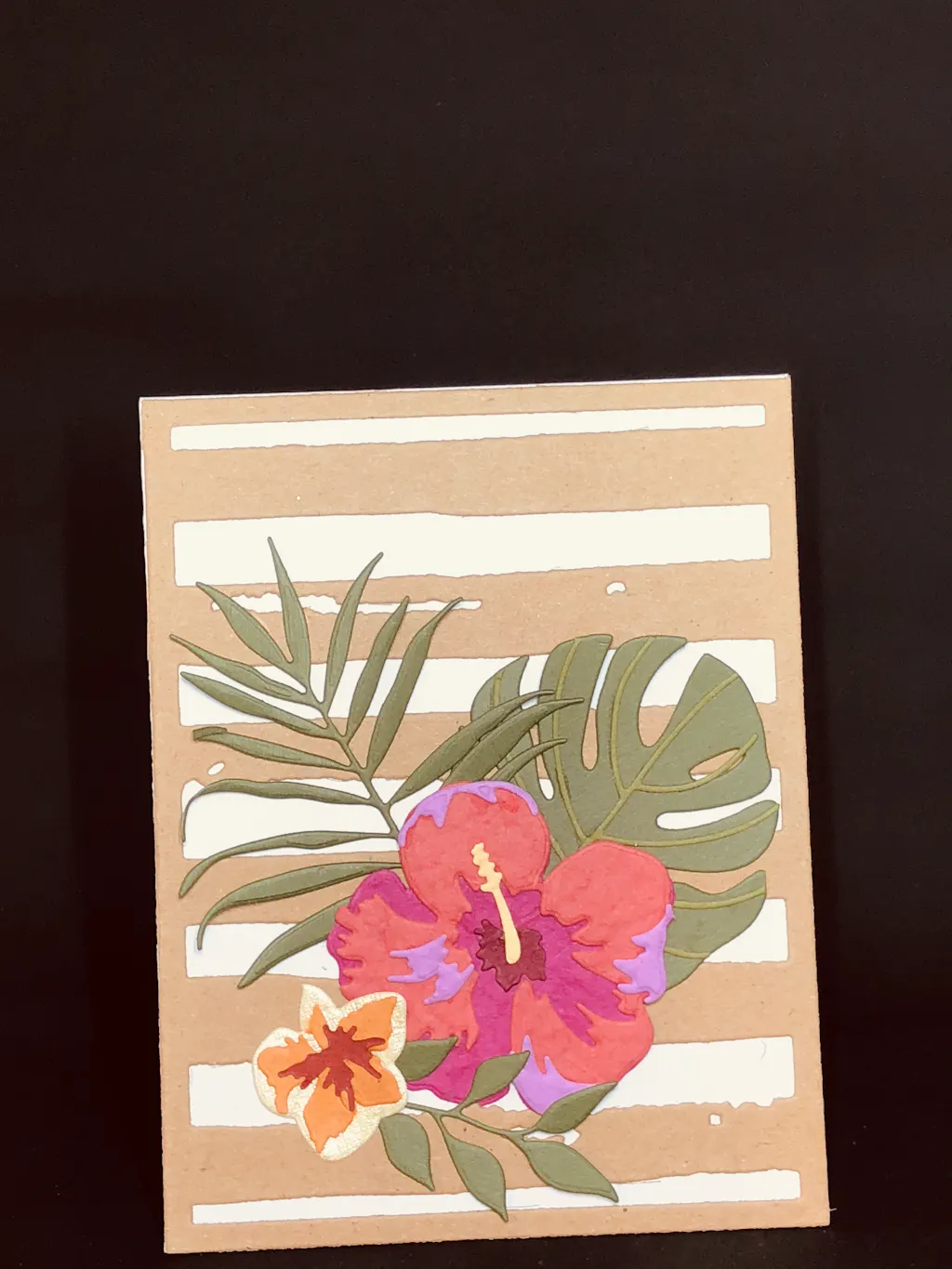 I paired this background cut from kraft stock with the Hibiscus Garden 3-D die Set and it is absolutely perfect. For an all purpose background die you cannot go wrong with this one!