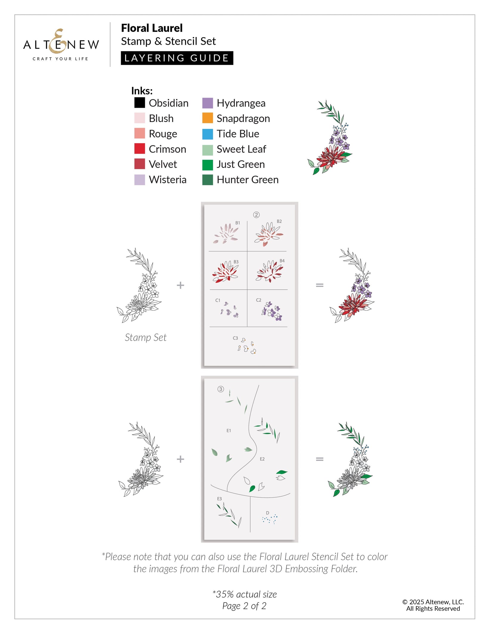 This is a special bundle of the Floral Laurel Stamp Set, Floral Laurel Die Set, Floral Laurel Simple Coloring Stencil Set, and Floral Laurel 3D Embossing Folder.