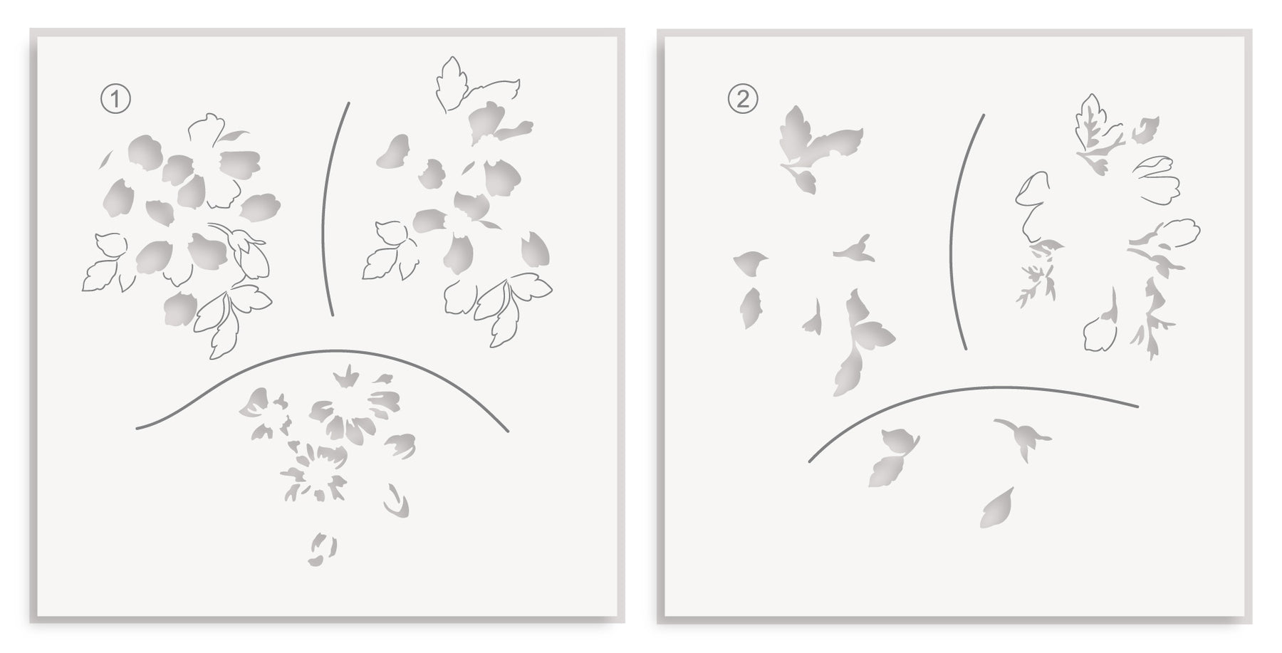 The Sweet Spray Simple Coloring Stencil Set allows you to add color easily and effortlessly to the stamped or embossed image from its coordinating products. Simply choose your favorite ink colors and blend in some color using our highly popular Mini Blending Brushes. There are 2 stencils in this set.