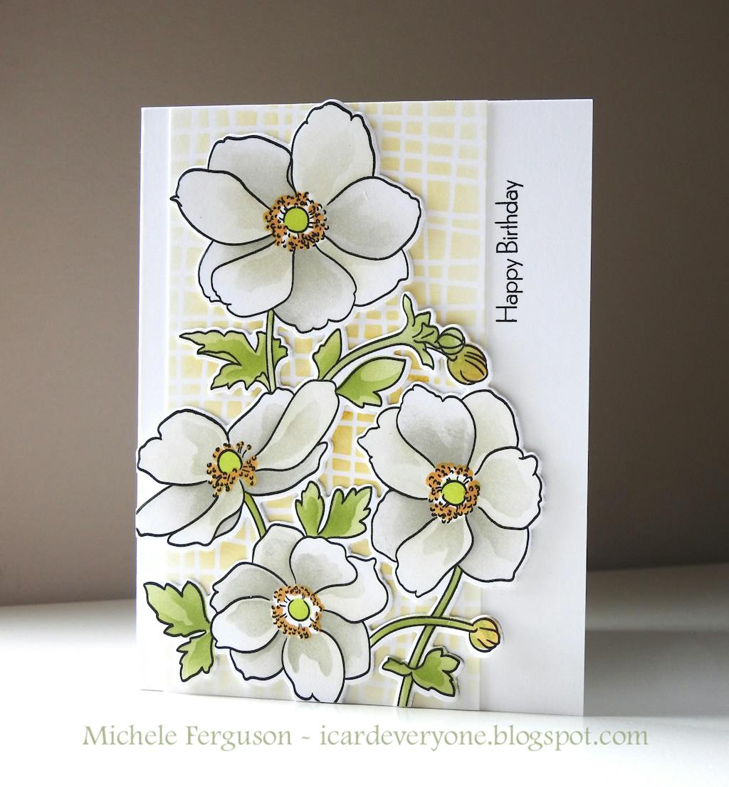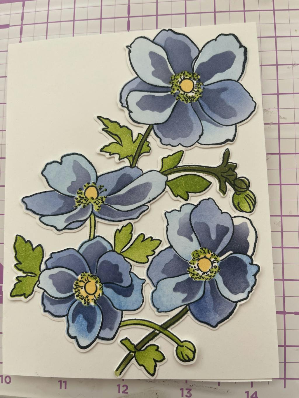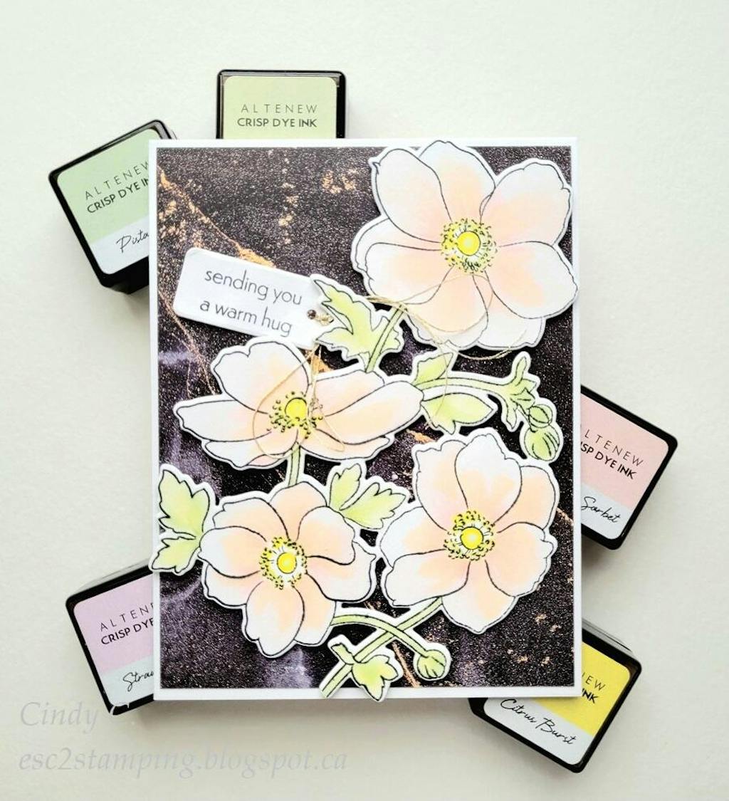 The Japanese Anemone Build-A-Garden makes creating floral projects a pleasure! The outline stamp lets you color freely, and stencils lets you ink up without over thinking where the shadow should go, and the die cut makes life so much easier compare to hand cut! This set inspires me so that I want to plant some in my garden the next chance I have!