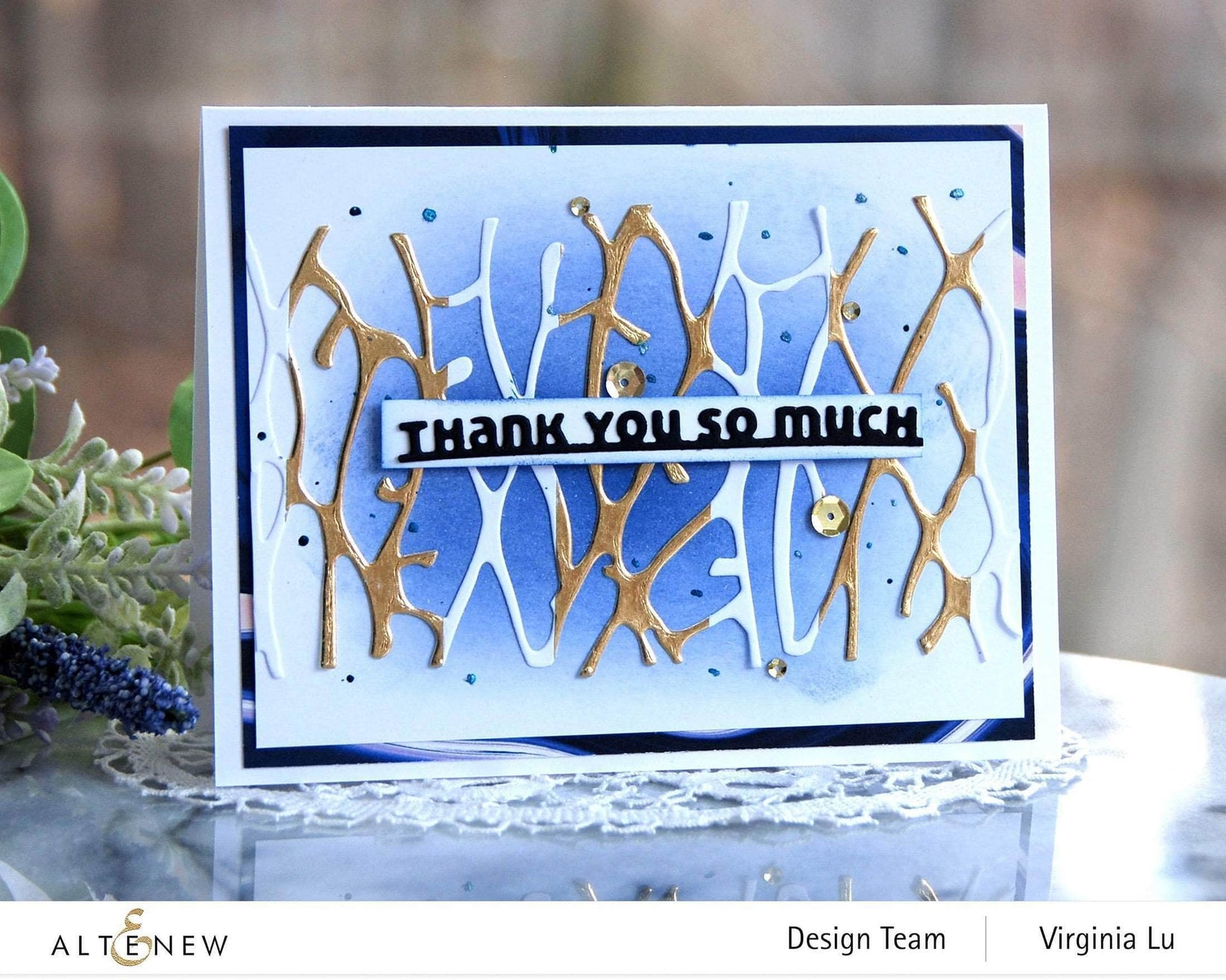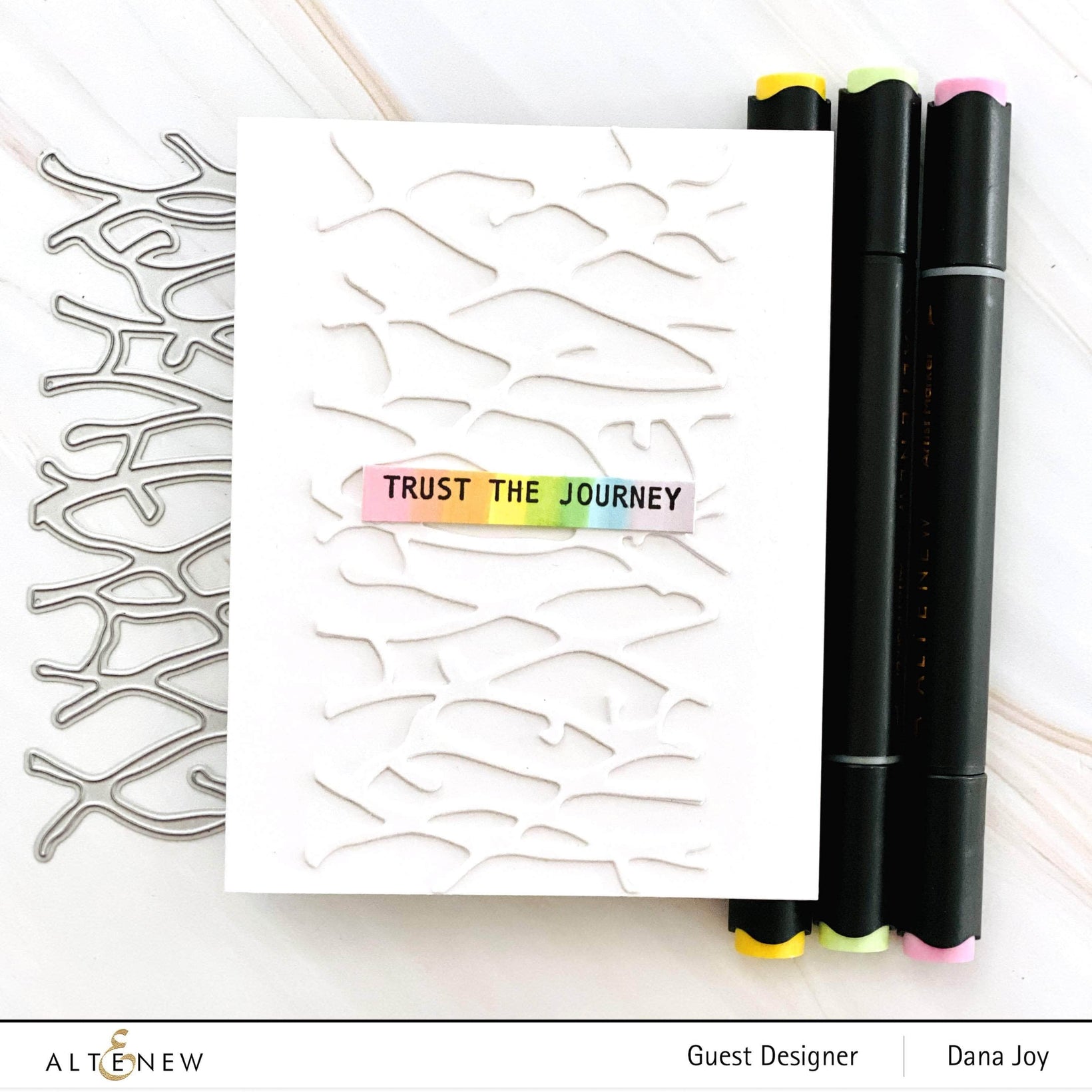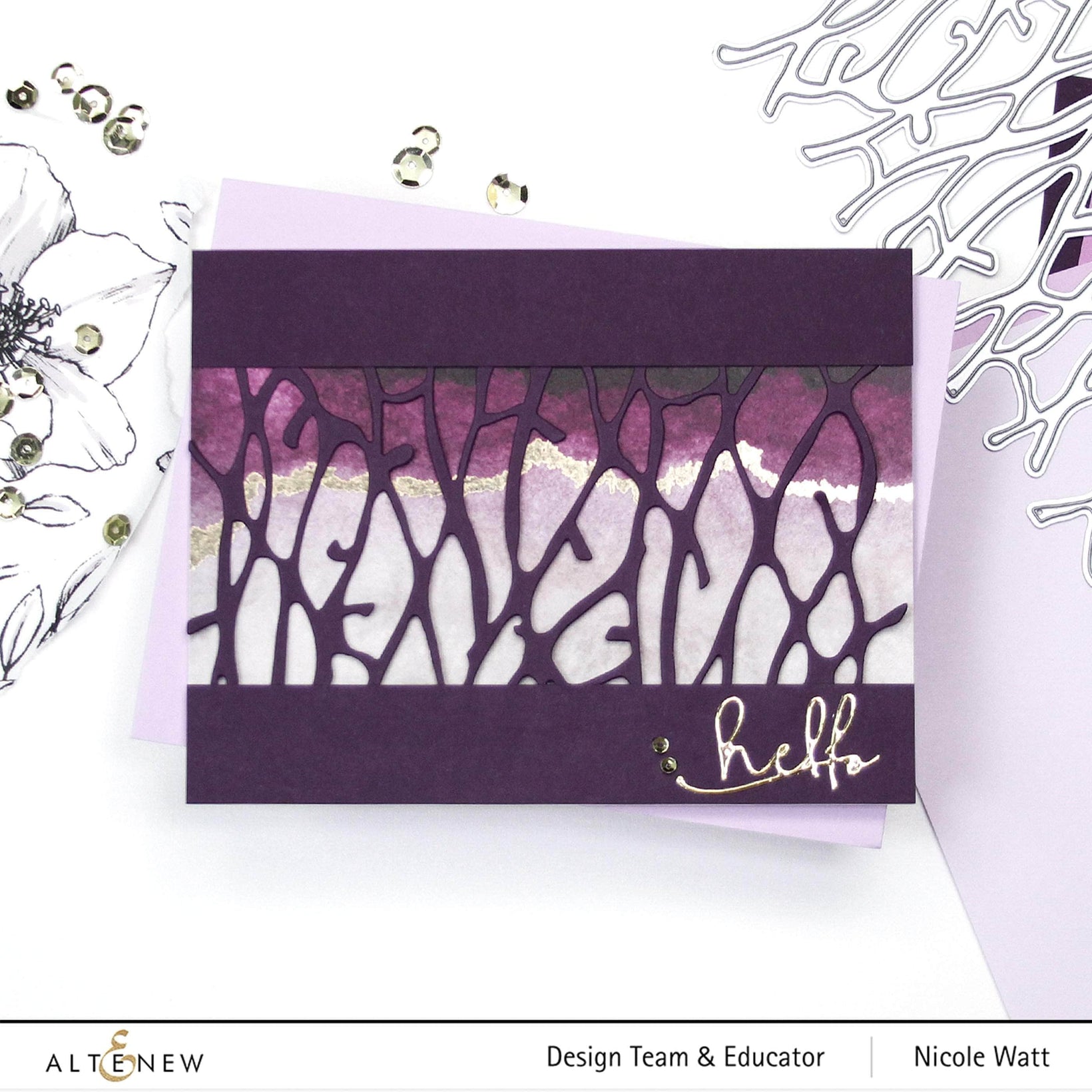 This die will cut an abstract shape that loosely resembles the light reflection on water surfaces. This is a great die for adding subtle monochrome texture to your backgrounds or creating a bold statement piece.