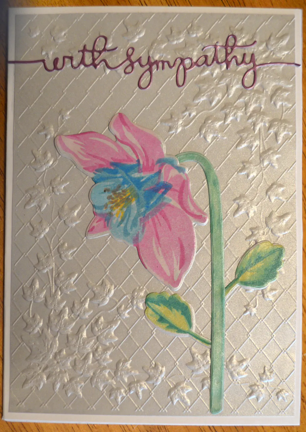 I participated in the class for this set and had some fun and learned some tips for layering this lovely stamp set. We designed 2 cards. I love columbines because I used to grow them in my previous residence.