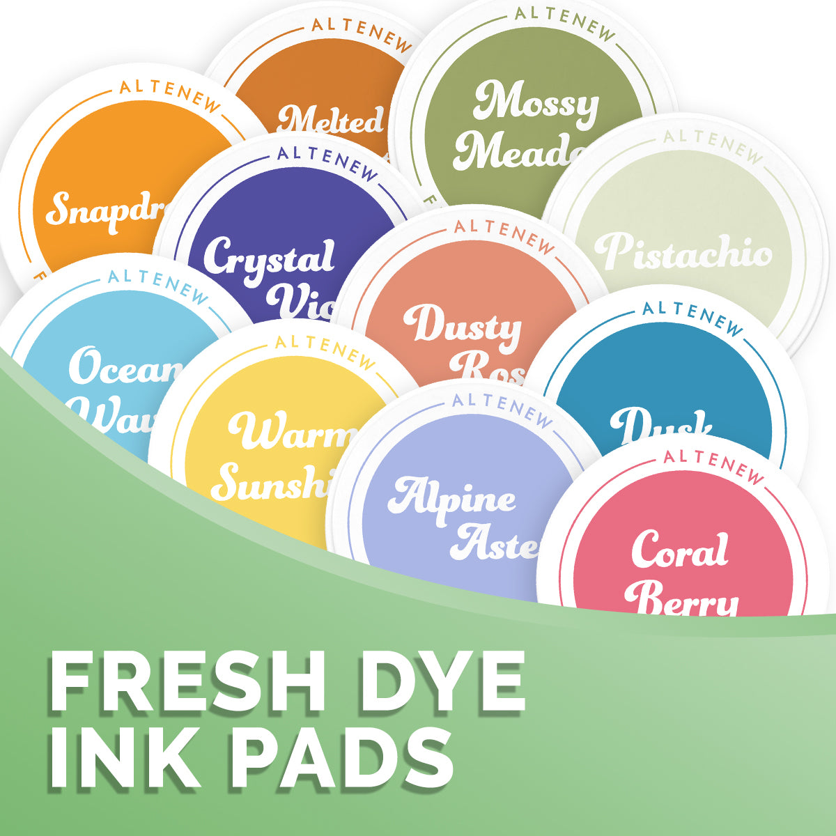 Featuring Altenew's innovative use of round ink pads, these felt ink pads can be stored and stacked up quickly on your crafty desk! With the easy-to-twist lid, bright and vibrant colors, and the beautiful impression that these fresh dye inks offer, you will reach for them again and again!
