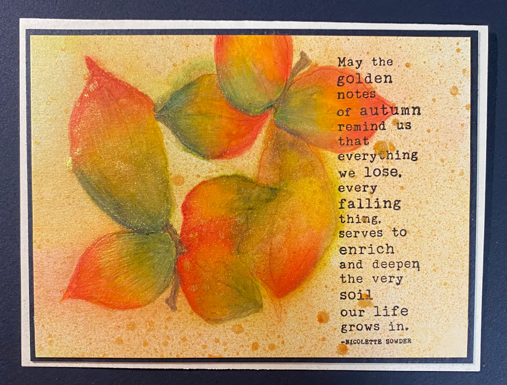 Wow! This spray adds the perfect finish to my fall cards. You can splotch bigger drips or add a light whisp of golden shimmer warmth to your cards.
