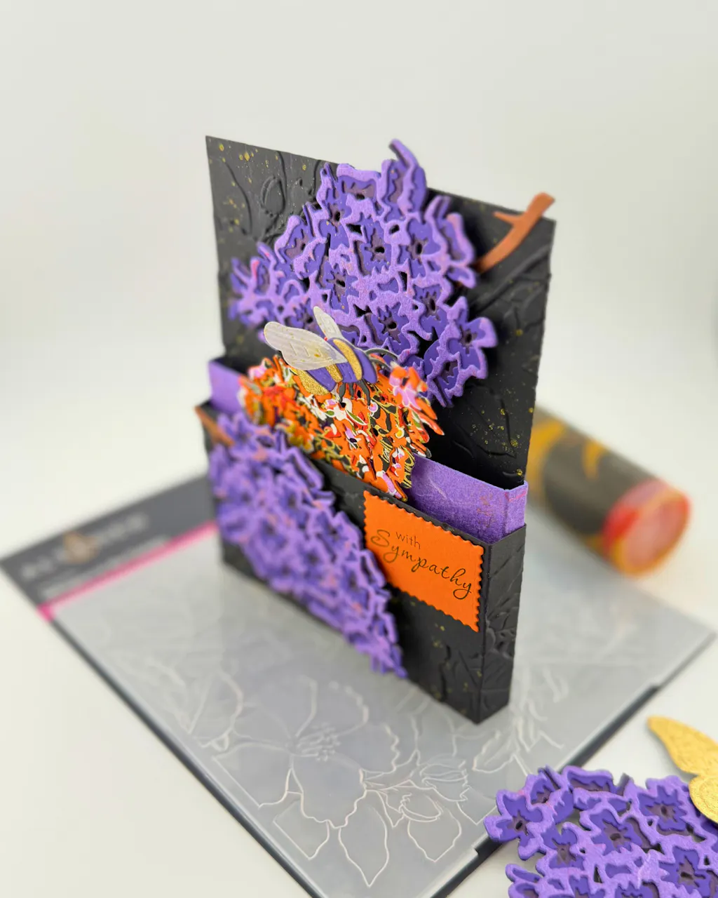 This spray adds a lovely shine to my projects! Sometimes I spray it directly on the cardstock, but often I take out the nozzle and tap the tube with a paintbrush to spread my splatters.