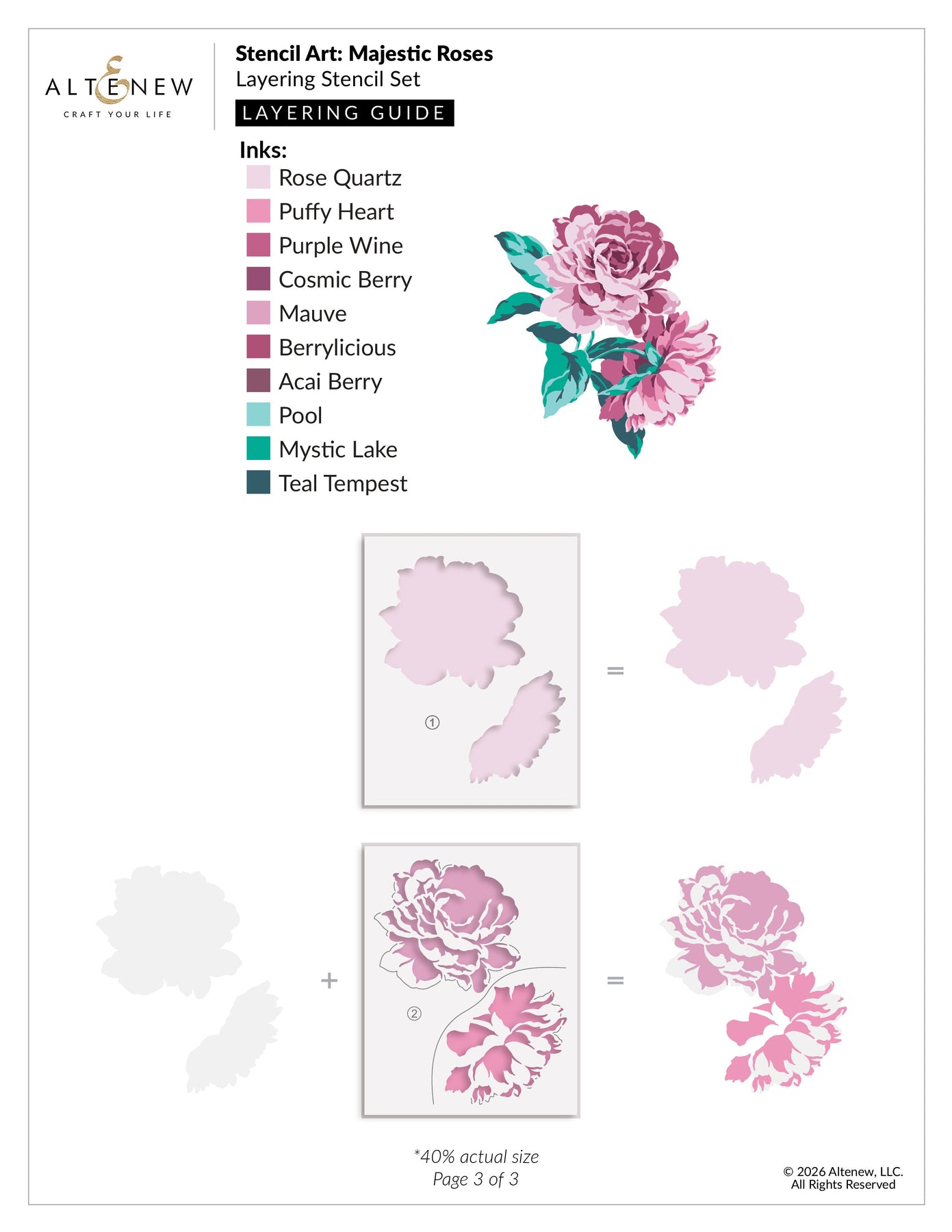 Create a lush floral focal point with the Stencil Art: Majestic Roses Layering Stencil Set. This set includes two large roses in full bloom, each layered for dimension and delicate detail. Coordinating leafy elements bring movement and life to your composition. Build elegant clusters with inks, mixed media pastes, or ink sprays for breathtaking results.