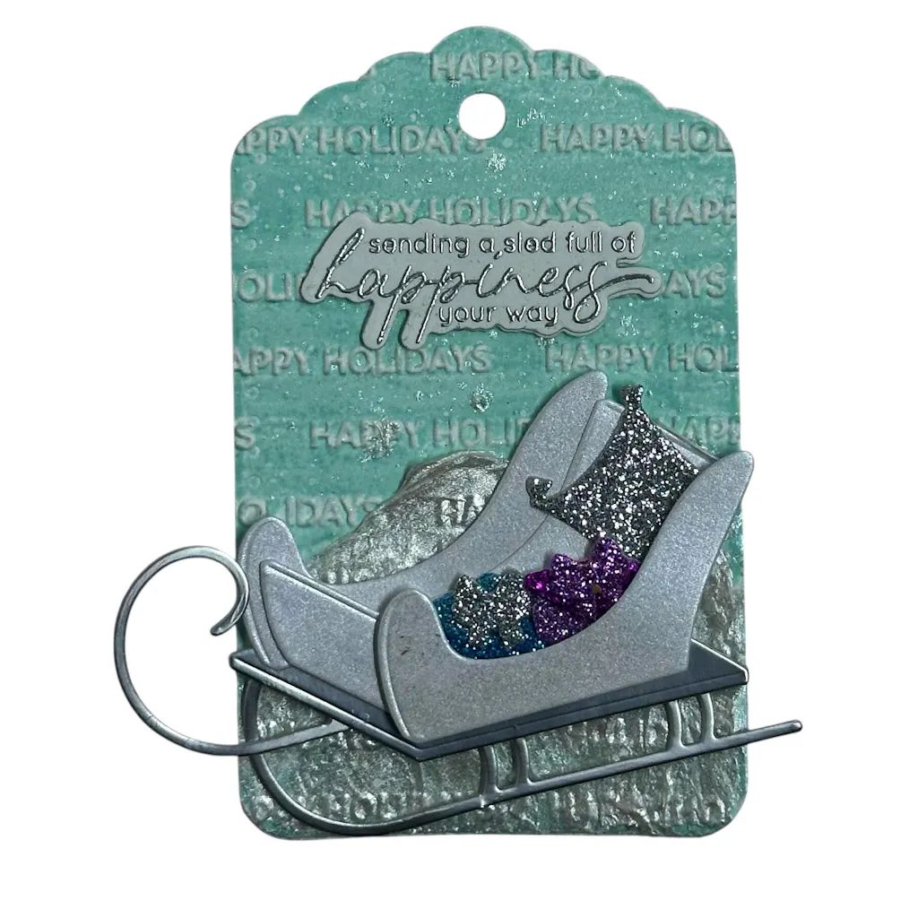 This die set caught my eye and I ordered it immediately. I couldn't wait to try different colors of glitter cardstock and sleigh colors.