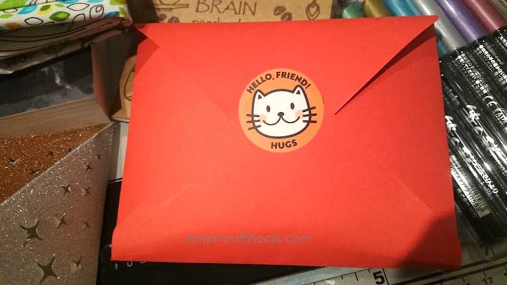 Very cute cat stickers! I didn't give it 5 stars because I wish "Hello Friend" was left off the stickers. I like to use cat stickers on gifts and letters to my grandchildren. I fussy cut from the top whiskers and cut out the words "Hello Friend". It's still adorable!! And my grandchildren will love it. I just wish that "Hello Friend" was left off.