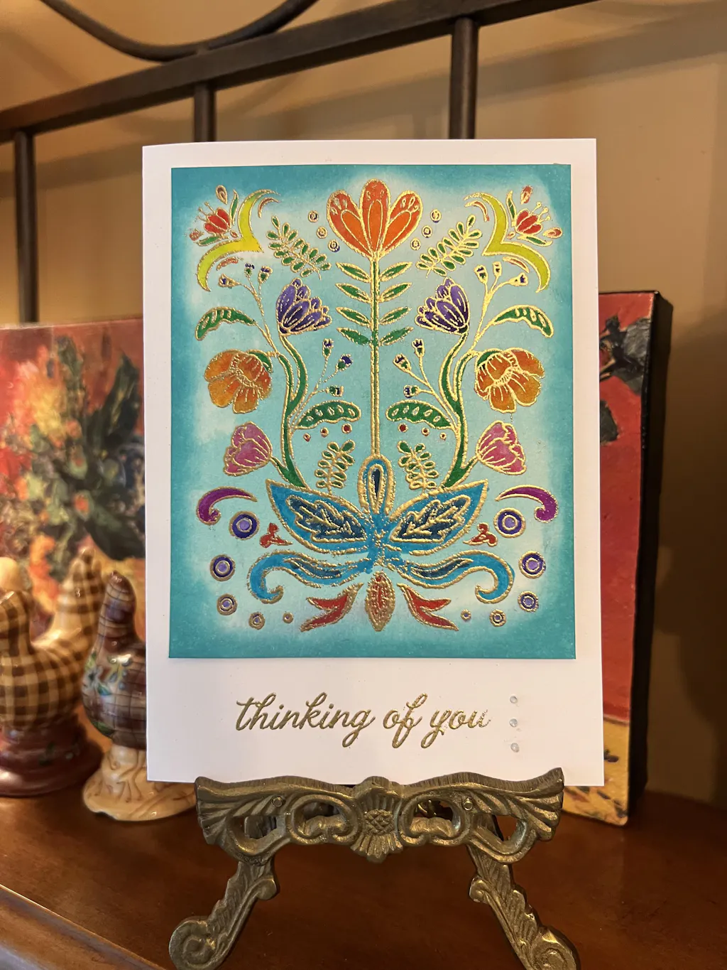 I really love this stamp set. I didn’t buy the die but I may now that I made a card using it. I received so many compliments on my card. Love folk art!