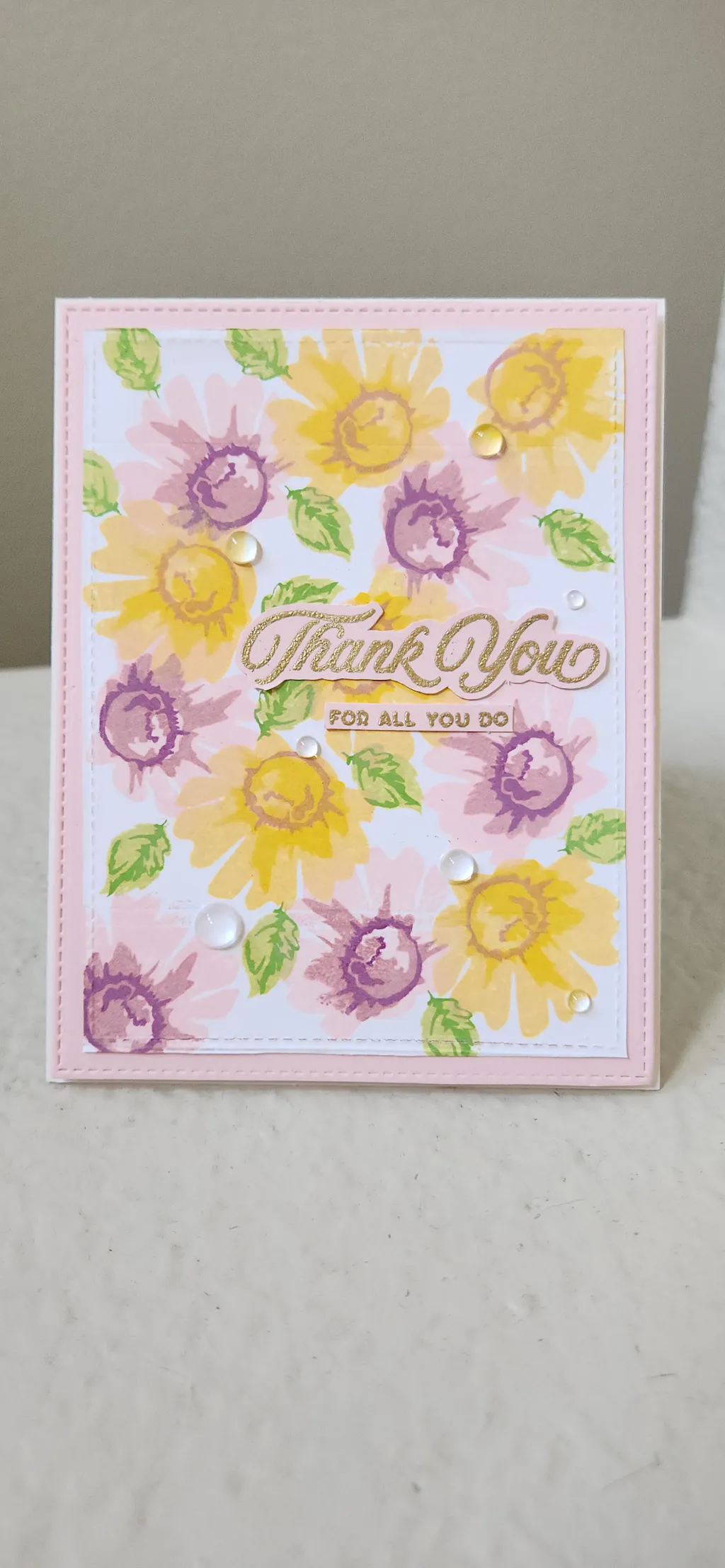 Had fun using this mini daisy stamp set. Layers easy to line up and if off a bit not noticeable. Great little stamp.