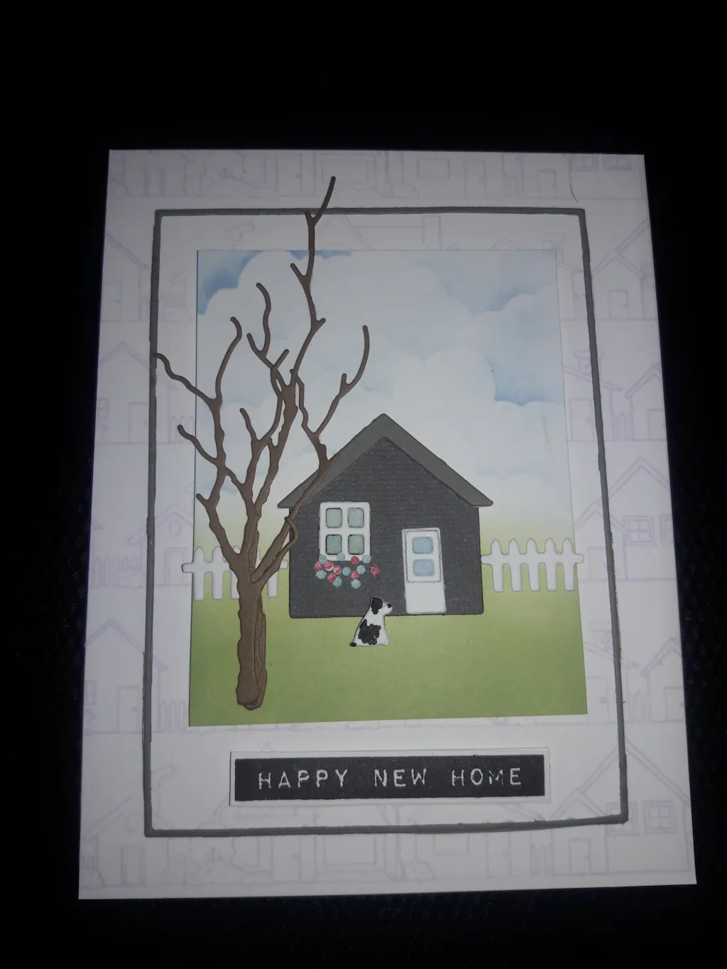 Used this stamp and the Village die set to make a card for a new homeowner. I even put her dog out front!