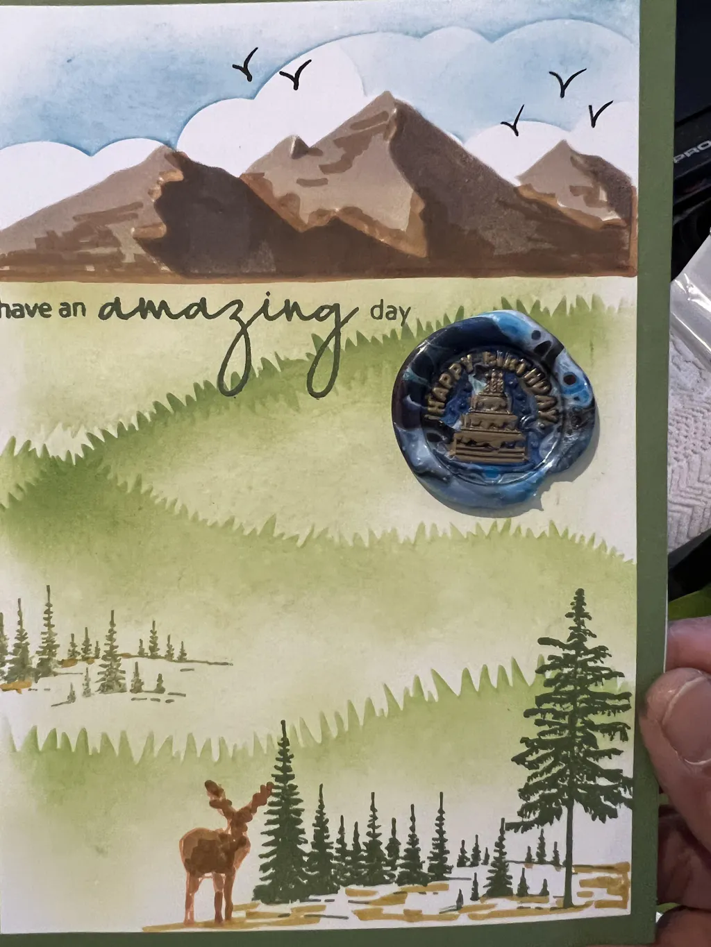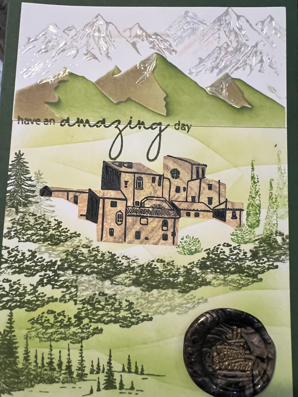 Bottom half of the stencil with pine trees is my favorite. I combined this stencil with other stamps etc to create cards.