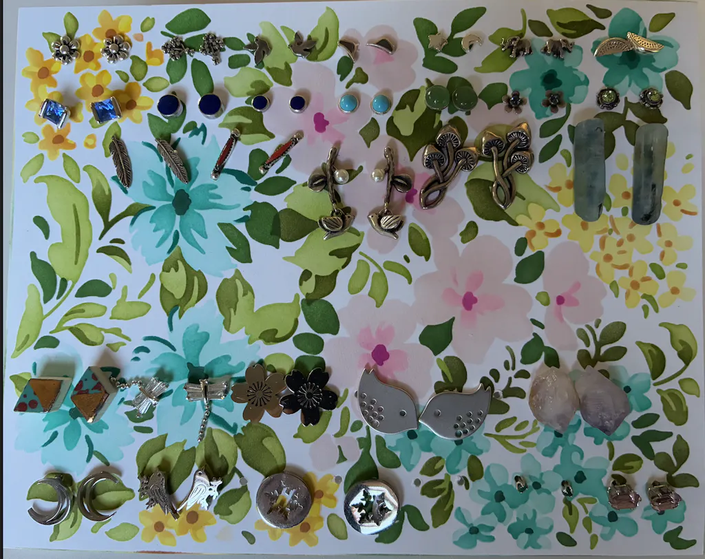 Great design. This has a vintage vibe when stenciled in the suggested colors. It was really easy to line up each layer. Detail blending brushes and mini brushes helped get the ink in the small openings. I stenciled two at a time and used one to make a card for all my earrings.