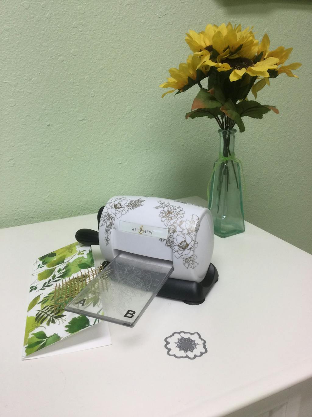 Our Mini Blossom Die Cutting Machine is the compact and portable must-have tool for your craft room! It is designed to work with Altenew dies (sold separately) and other wafer-thin metal dies. It can be used to quickly and easily die cut a variety of materials, including cardstock and Altenew specialty papers, and will help you add texture and dimension to your projects. The elegant and clean design will look wonderful on your craft desk, secured on its stable base with suction feet. Cutting plates are included in the packaging.