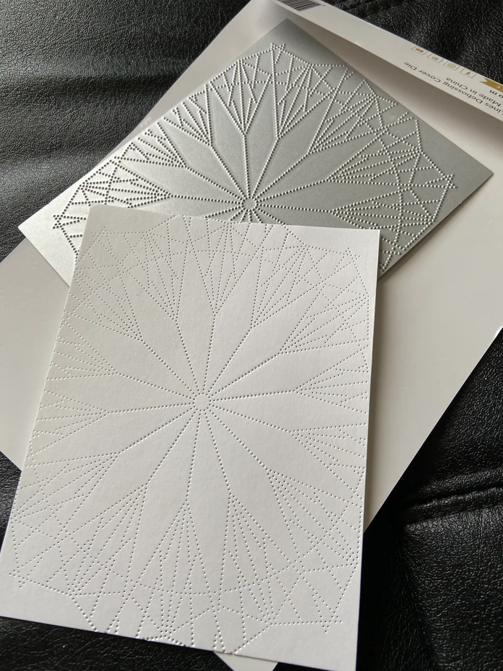 This die has been designed to cover the front of an A2-sized card. Instead of cutting through the cardstock, a dotted line pattern is debossed into the surface. You will be able to create gorgeous textured handmade cards to send to your loved ones.
