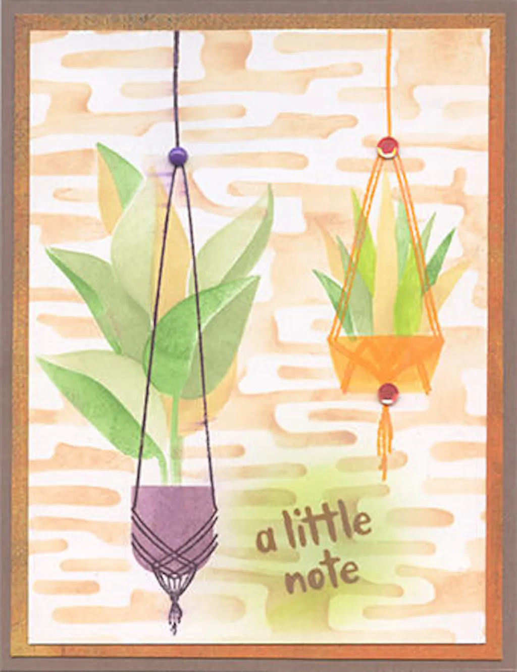 This stencil set helps you to create three different potted plants. When paired with the coordinating stamp set, the images transform into hanging plants with macramé details. Mix and match the planters to create a custom look!