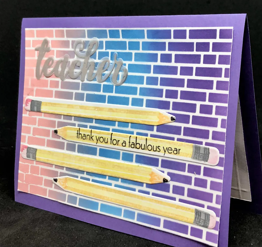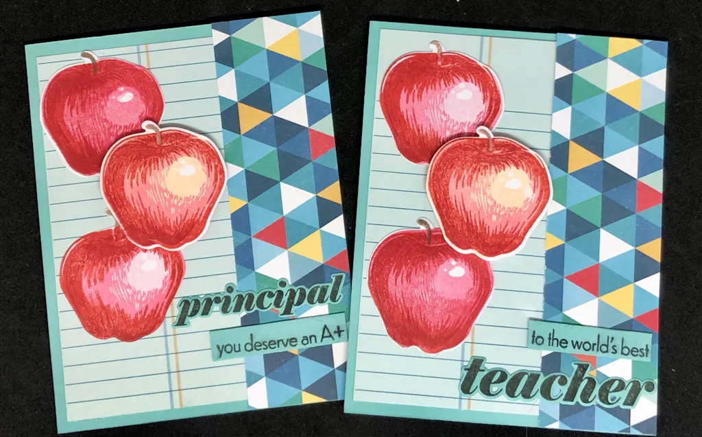 The sentiments are absolutely great! The Apple was so much fun to do layered stamping and loved the result. The pencil was hard to line up the layers.