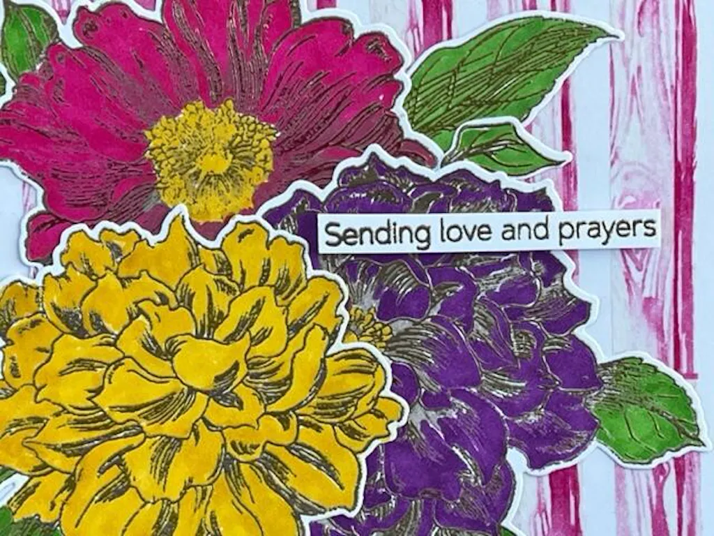 Great embossing ink that works well with delicate sentiments as well as large floral images with very detailed areas! In the cards below, the sentiments, flowers and leaves were all inked with Altenew's embossing ink and then covered with Altenew's Platinum embossing powder.
