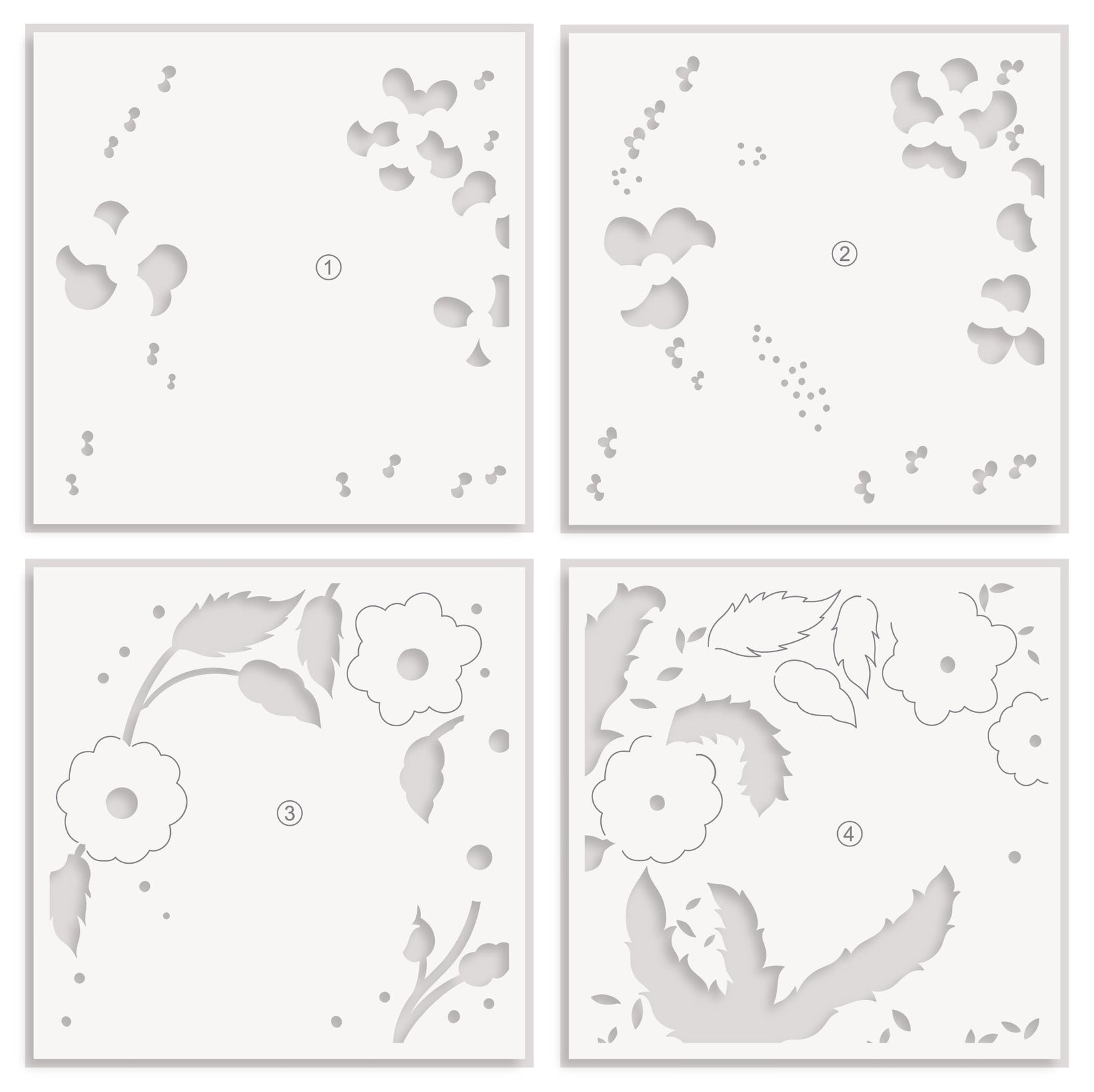 The Fairyland Florals Simple Coloring Stencil Set (4 in 1) coordinates with the 3D Embossing Folder and brings the magical garden to life! Simply add your favorite colors with our blending brushes and watch the magic happen. You can also use the stencil set without the embossing folder.