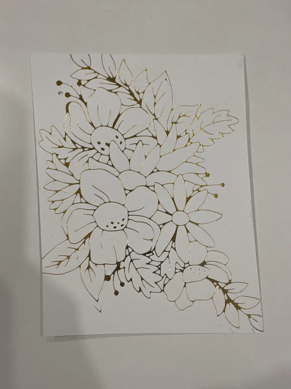 The Flowery Bouquet Hot Foil Plate coordinates with the Flowery Bouquet Simple Coloring Stencil Set (3 in 1). This hot foil plate features a beautiful flower arrangement filled with whimsical flowers and branches. The hand-drawn images are sweet and charming and would look lovely in any color of metallic foil!