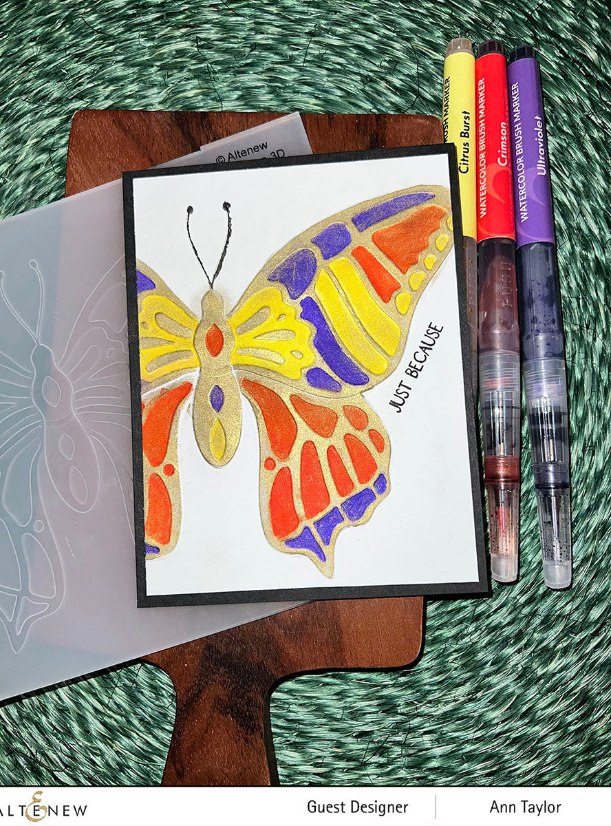 I love this butterfly. So many color options and the stencil makes it easy to color. Cute, fun card!