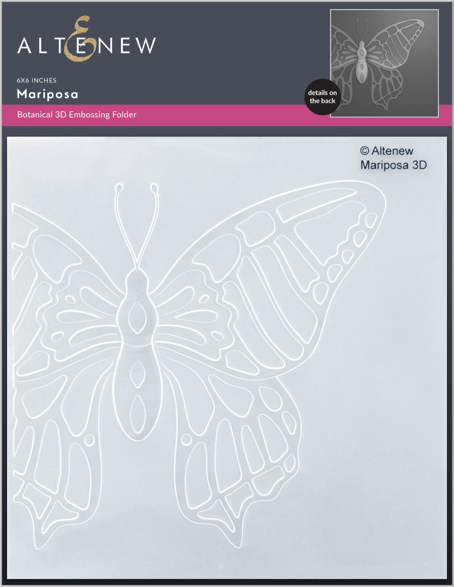 The Mariposa 3D Embossing Folder coordinates with the Mariposa Simple Coloring Stencil Set (2 in 1). Instead of achieving merely two levels of embossed texture, this folder will produce three-dimensional shaped designs to enhance your creations. Simply run through your die cutter following the manufacturer's instructions for 3D embossing folders, and you're all set!