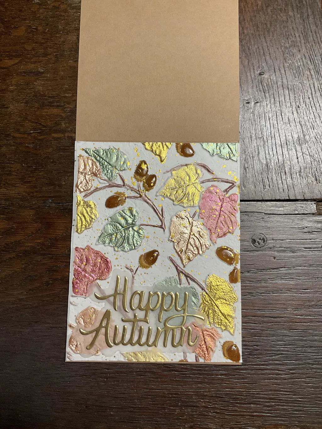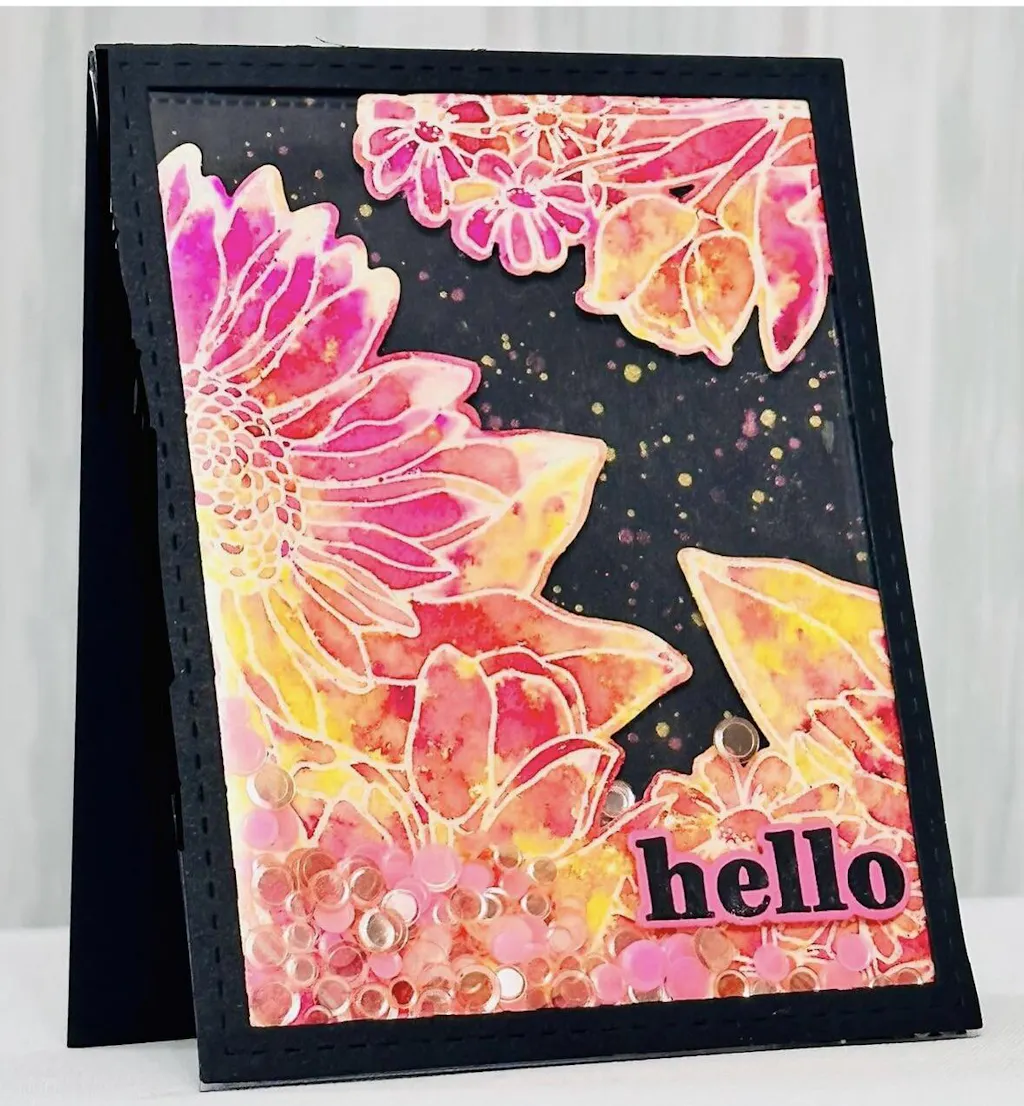Now this is true metallic! It just glistens like light on snow in just the right light! I used it to make background splatter with the Seasonal Blooms and lined stencil sets!