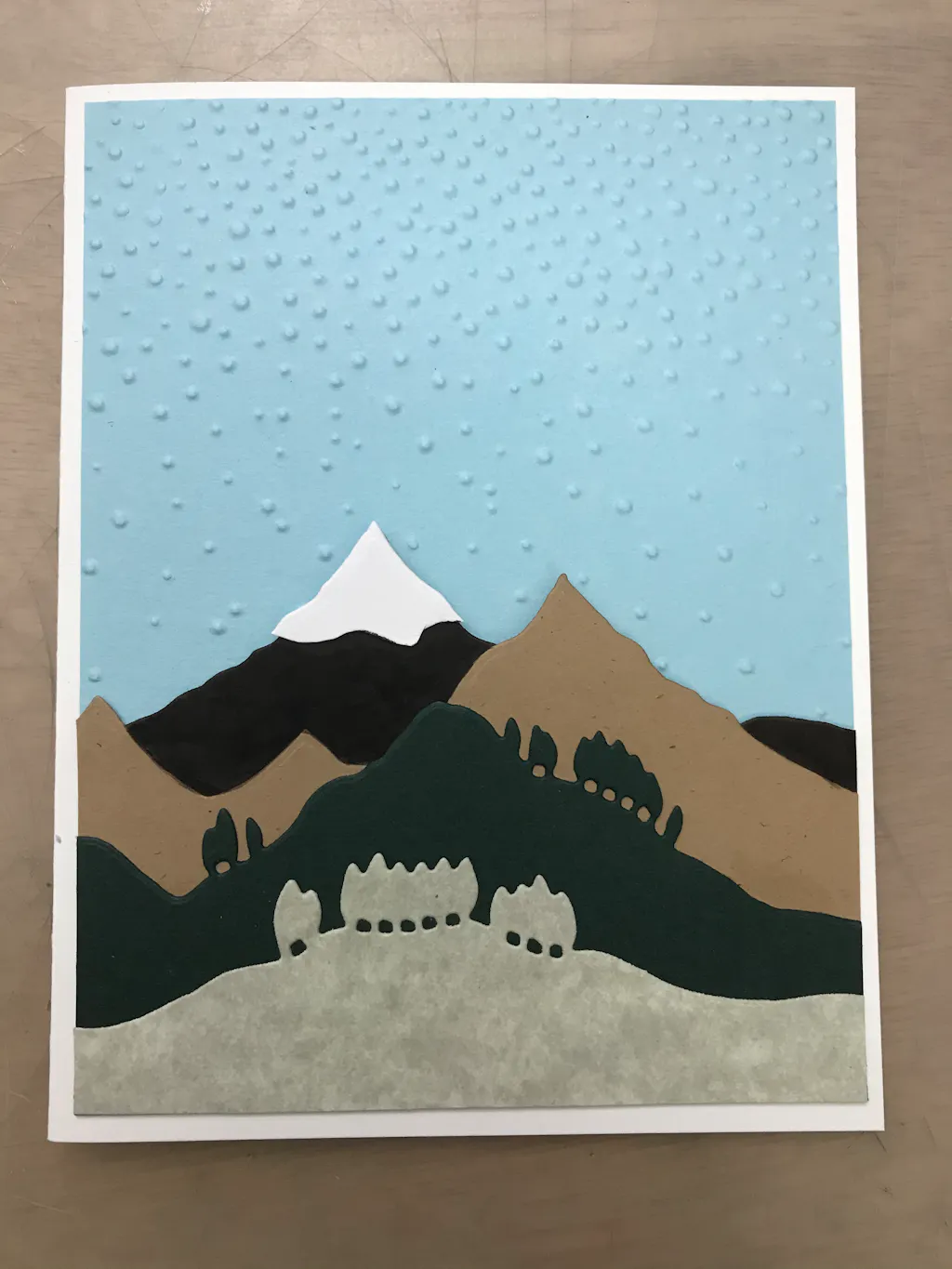 This die set includes four landscape dies of mountains and trees. Each die measures a little over 5.5" in length. You may use any of the dies alone or all of them together to create a multi-dimensional layered look.