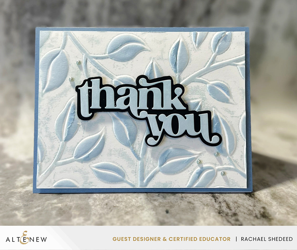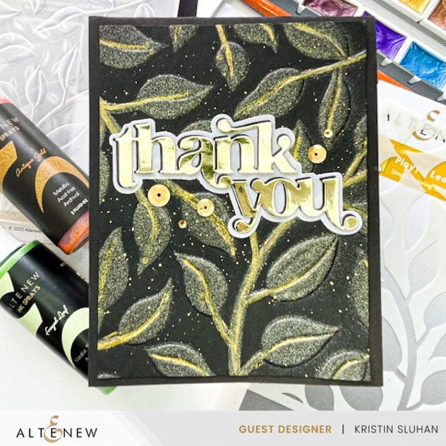 I couldn't believe the dramatic results from this folder! You sure you didn't need to call it a 4D? LOL Just blown away! This was so raised I was able to use a gold paste by Simon Hurley to dab onto the leaves for a stunning effect. It will be super easy to do the black out technique with this folder. Thanks Altenew!