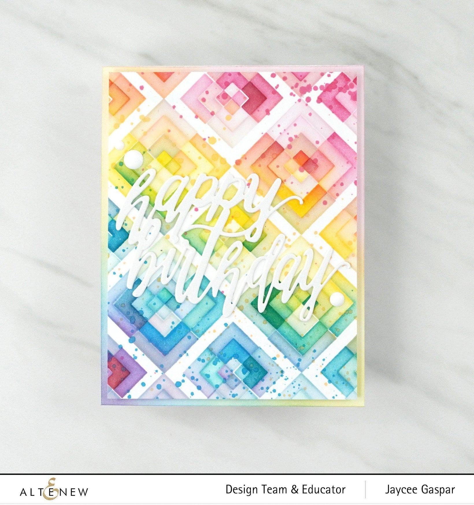 The Shattered Cubes Builder Stencil Set (2 in 1) comes with two stencils that can be combined to generate endless designs. Each stencil can work on its own by rotating 90 degrees and re-inking it, but the real magic happens when you mix and match the two stencils to create fun patterns. You can get more subtle designs if you use the same color as you rotate the stencils or a bolder and more intricate effect by using a different color every time.