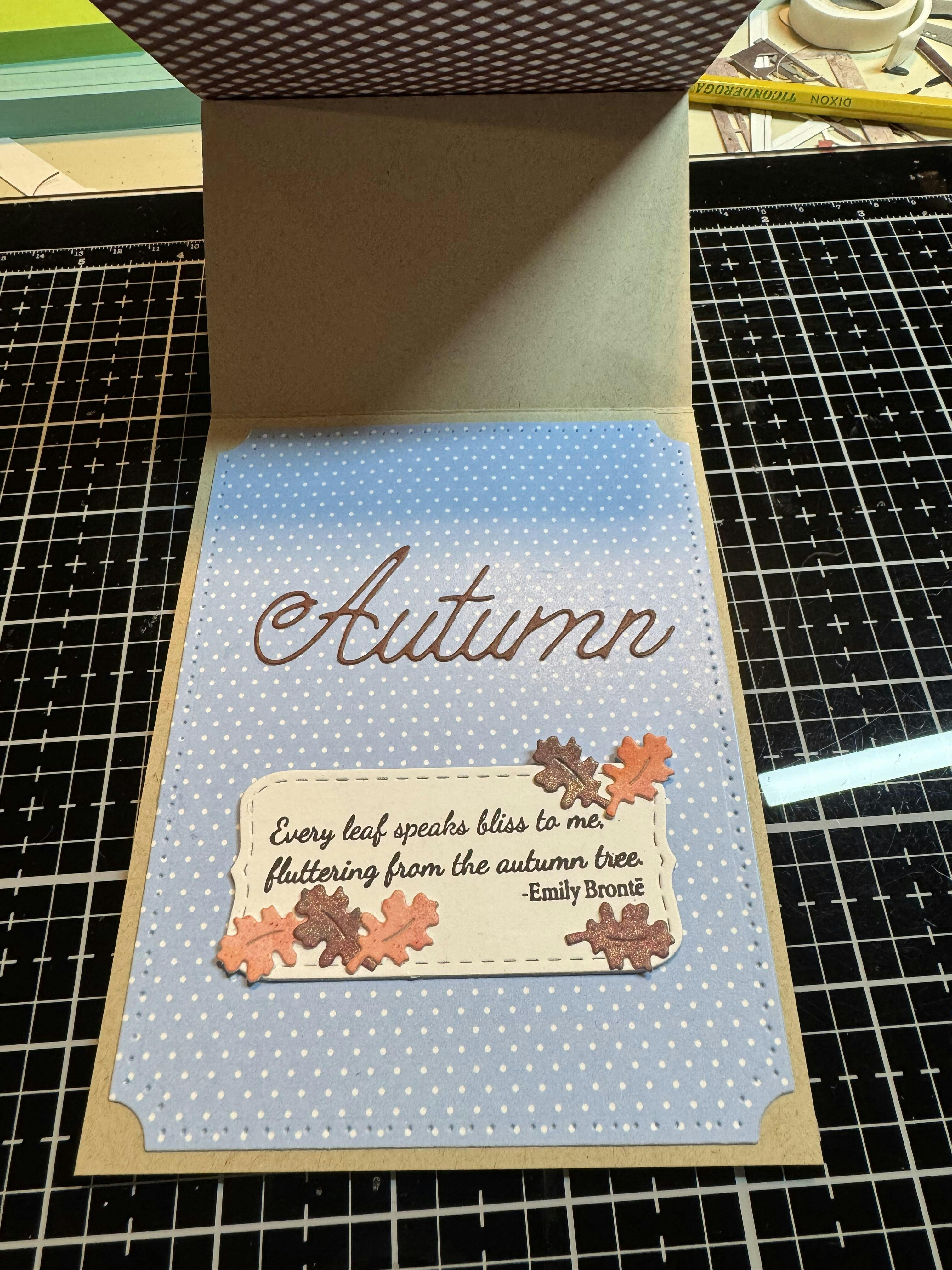 unusual design. Love how the tree appears to tower over everything. I played around with my Altenew mini crisp die inks and came up with a great set. So I made 4 card fronts in one evening. I turned them into sympathy cards, since I make all the cards for a ladies' Bible class at church. We send at least 10 cards a week from class. We lost 6 church members recently and suddenly had a need for sympathy cards. I plan on making more with thinking of you, hello fall, get well, and fall birthday cards while the season comes finally rushing in, and it is nice to surprise people with fall cards.