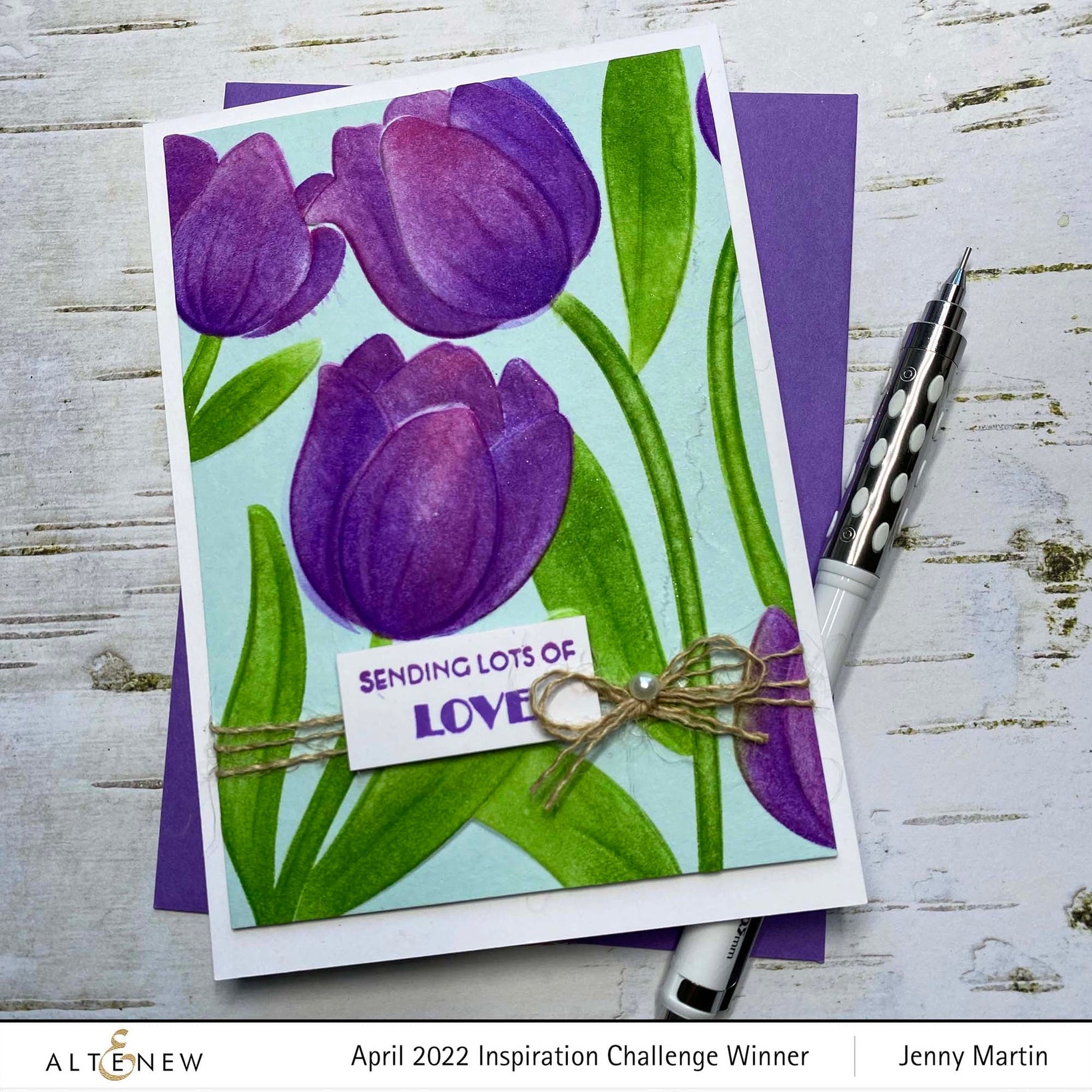 I’m loving this tulip stencil and embossing folder. So many color possibilities for tulips!
