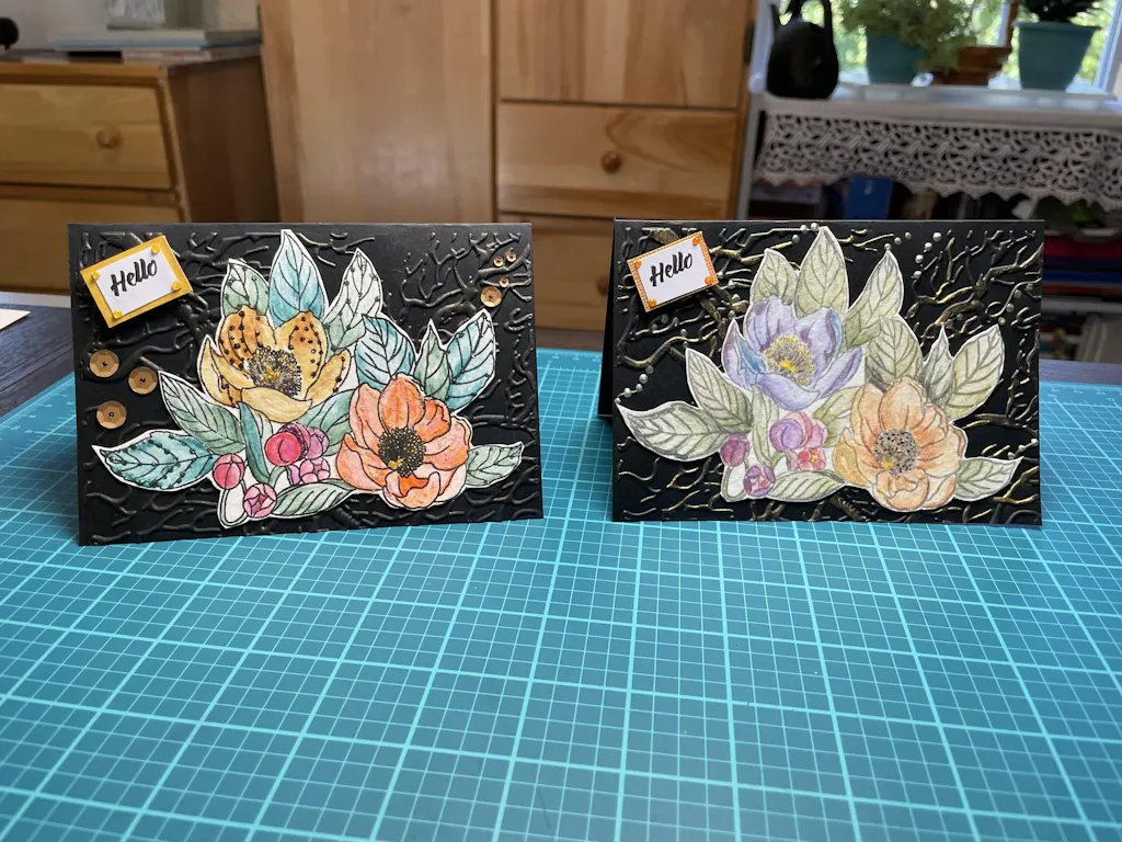 This embossing folder was perfect for a Halloween hose to creat a ‘creepy’ look and so pretty as a background for the Paeoniia Japonica stamp!