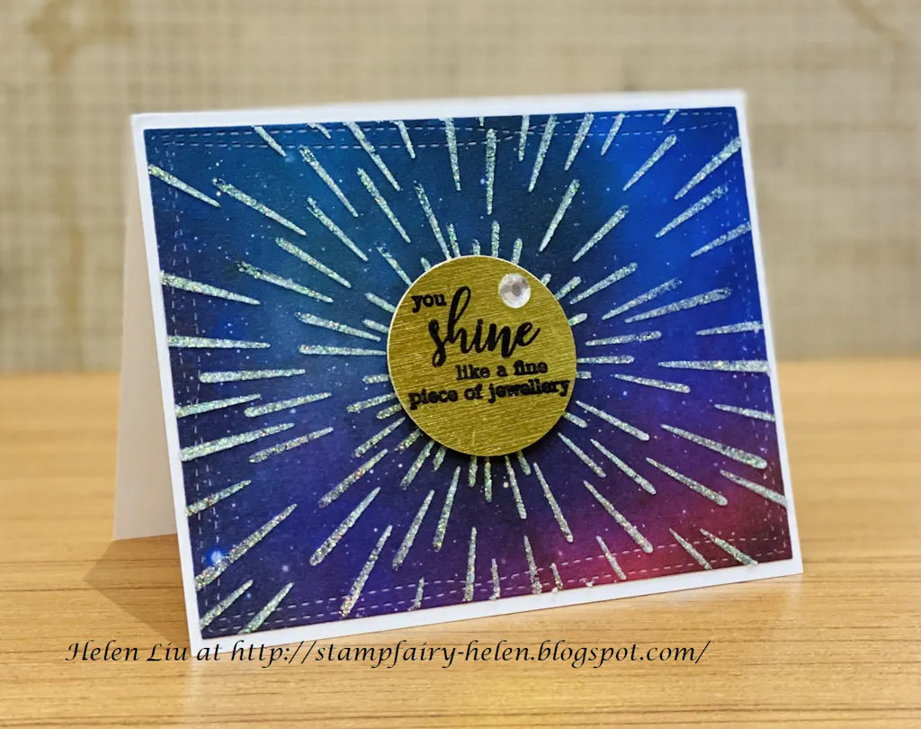 This is a great stencil for a variety of backgrounds, but I especially love it for celebration cards like birthday, New Year, or 4th of July cards. Works great with Altenew's Shimmer Relief pastes, too!