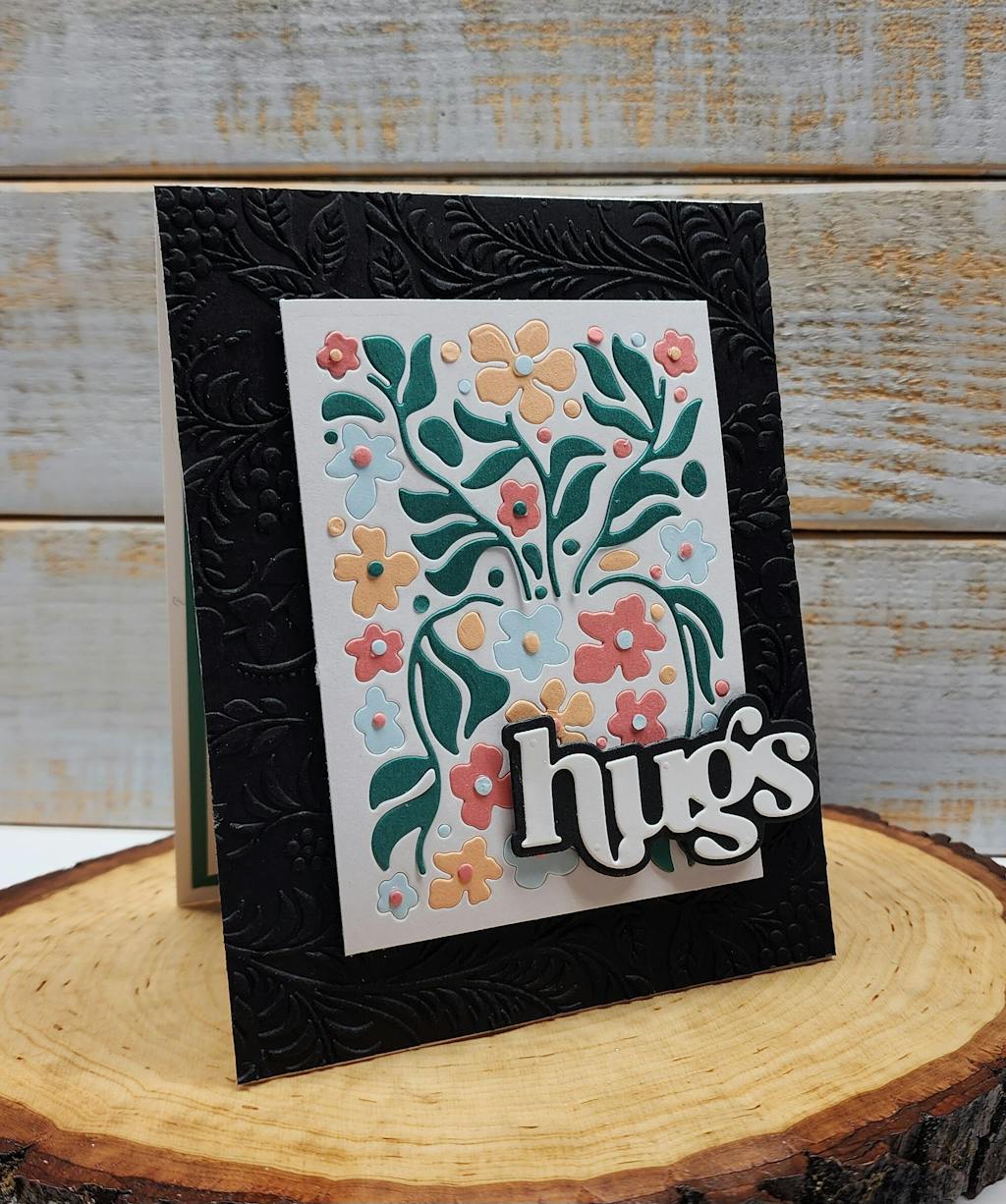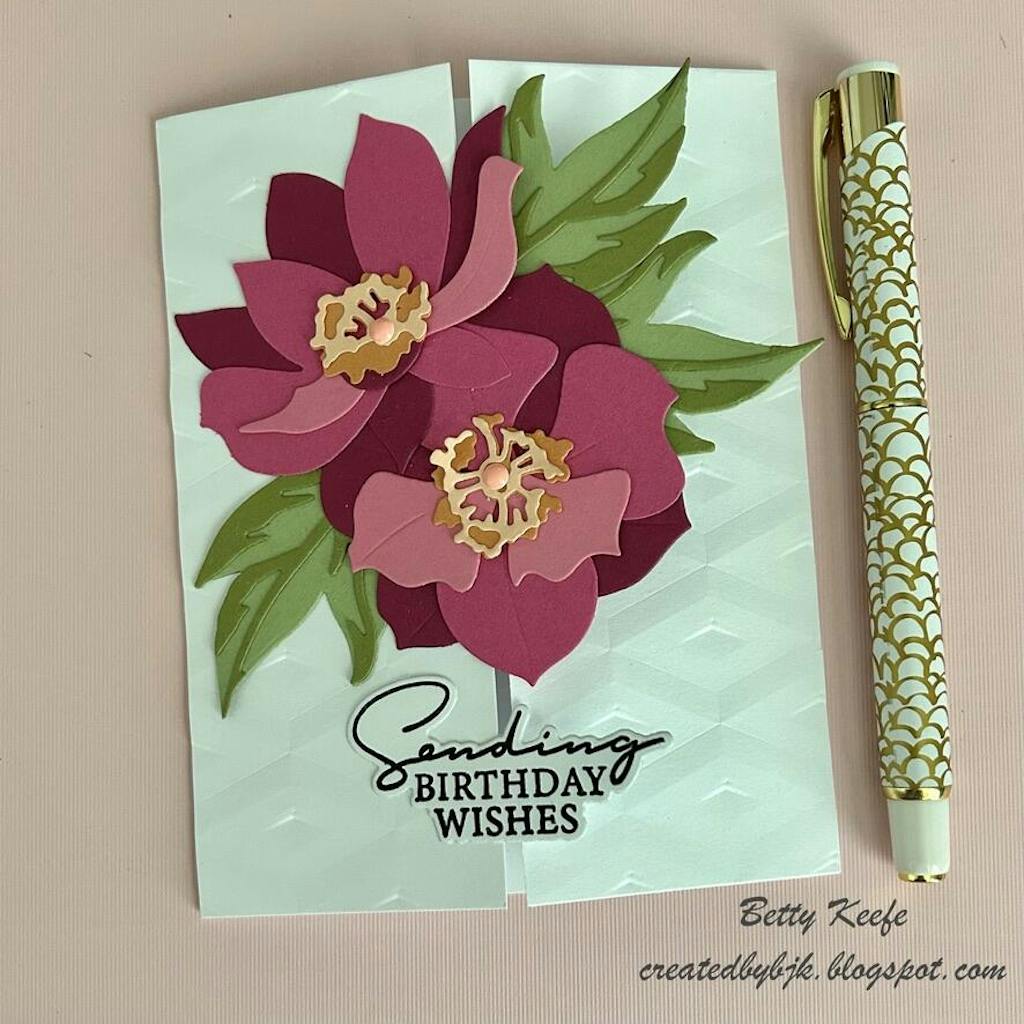 Designer's Tips: Layer 2-3 pieces of the flowers and place them back over the die-cut panel to make them pop.